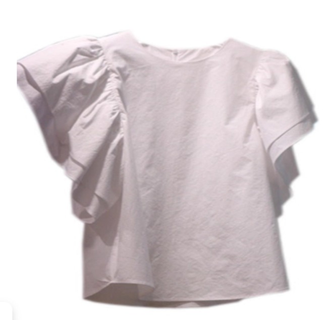 レディース トップス シャツ ブラウス 半袖 フレアスリーブ フリル袖 Uネック ラウンドネック 襟なし フレア 切り替え フォーマル フェミニン シフォン フリル ふわふわ コンサバ 薄手 大人可愛い きれいめ シンプル 上品 クール モード系 フォーマル とろみ感 かっちり 都会的 ラグジュアリー クラシカル ベーシック ナチュラル 無地 春 夏 謝恩会 会議 MTG プレゼン オフィス ビジネス OL 通勤 お出かけ パーティー イベント レストラン 女子会 合コン コンパ カフェ 婚活 普段使い