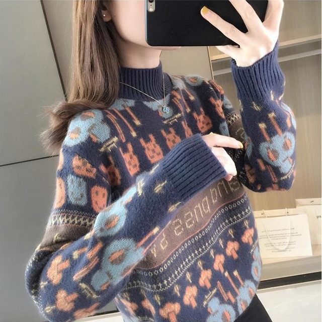 レディース トップス ニット セーター プルオーバー ミモレ 長袖 萌袖 ハイネック 細身 ストレート オーバーサイズ フェミニン ストリート 伸縮性 異国風 ヴィンテージ 厚手 ニット かわいい 大人可愛い カジュアル おしゃれ レトロ こなれ感 ラフ ガーリー ルーズ 個性的 主役級 抜け感 キュート 都会的 アニマル柄 キャラクター 総柄 冬 ハロウィン クリスマス バレンタイン デート お出かけ 旅行 女子会 休日 ショッピング コンサート ライブ カフェ フェス お揃い コーデ 楽ちん 暖かい
