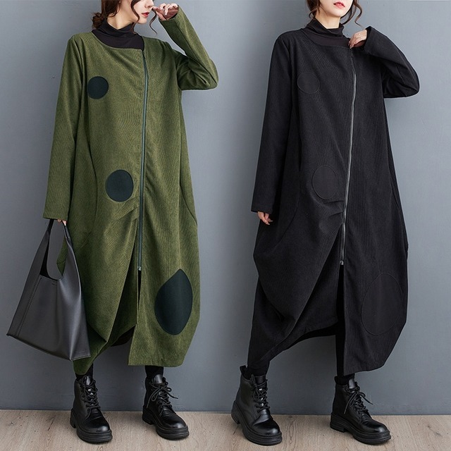 レディース ジャケット アウター 上着 プラスサイズ ロング 9分丈 長袖 ラウンドネック ワイド ファスナー ポケット 前開き かわいい シンプル カジュアル おしゃれ かっこいい レトロ こなれ感 ラフ メンズライク マニッシュ ボーイッシュ ルーズ 個性的 抜け感 キュート 学生風 アクティブ ナチュラル お出かけ アウトドア 旅行 女子会 休日 オルチャン コーデ 体型カバー 流行 インスタ映え 定番 ビッグ ゆったり ゆる フリーサイズ ブラック グリーン ベーシックカラー 大人カラー 秋カラー