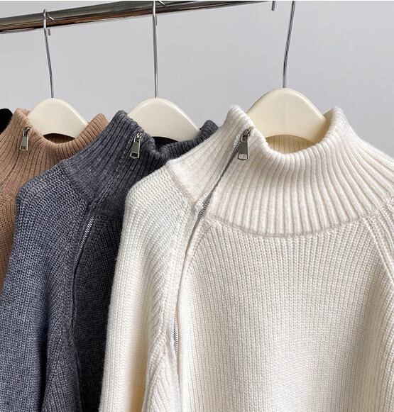 レディース セーター 長袖 ボリューム袖 ハイネック タートルネック ワイド セミフレア コクーン ストリート ふっくら ファスナー コンサバ ヴィンテージ かわいい 大人可愛い きれいめ シンプル カジュアル 上品 おしゃれ ラフ メンズライク マニッシュ ボーイッシュ スポーティー クール モード系 クラシカル 無地 秋 冬 ママ マタニティ 通勤 学生 学校 通学 アウトドア キャンプ 公園 休日 バカンス 就活 高原 ホテル 体型カバー 大きいサイズ ビッグ ゆったり ゆる フリーサイズ 白 黒 | SPARKJOY レディースファッション
