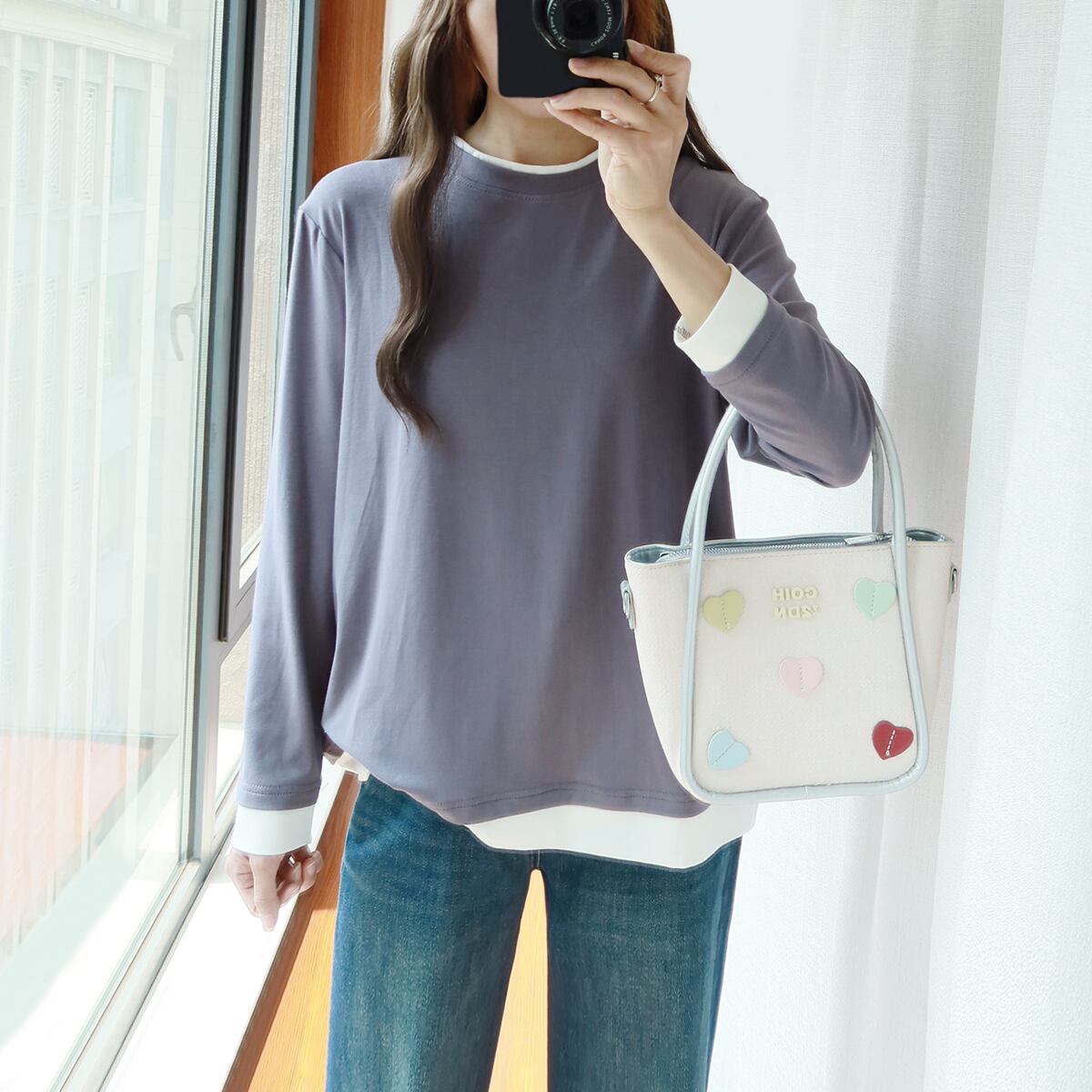 トップス カットソー 長袖 クルーネック プルオーバー ミディアム丈 重ね着風 かわいい 大人可愛い きれいめ シンプル 上品 おしゃれ かっこいい カジュアル こなれ感 個性的 主役級 存在感 抜け感 春 秋 ベーシック ナチュラル キュート メンズライク 無地 女性用 レディース ママ OL 通勤 オフィス 学生 通学 デート お出かけ お泊まり 女子会 旅行 休日 カフェ ショッピング コンパ イベント 普段使い デイリー 着回し 重ね着 XL 2XL 3XL 4XL ゆったり 楽ちん 大きいサイズ | SPARKJOY レディースファッション