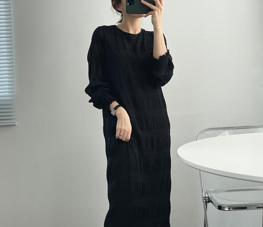 シンプルでありながら存在感のあるこのワンピースは、カジュアルからきれいめまで幅広いシーンでおしゃれに着こなせます。