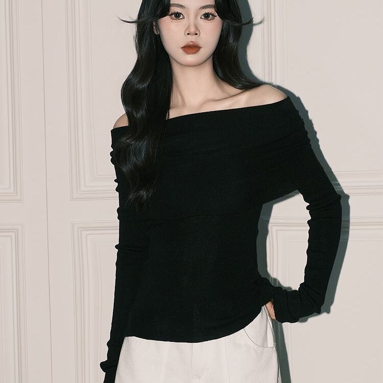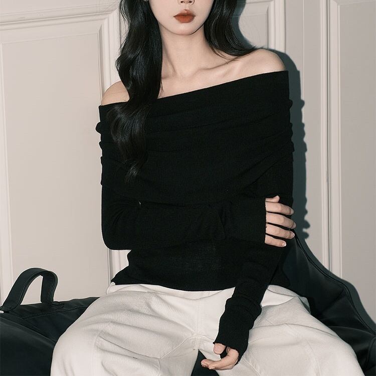 トップス カットソー 長袖 オフショルダー オフショル プルオーバー ミディアム丈 萌え袖 かわいい 大人可愛い きれいめ シンプル 上品 おしゃれ かっこいい カジュアル こなれ感 個性的 主役級 ルーズ 存在感 抜け感 春 秋 ベーシック ナチュラル キュート クール フェミニン 無地 女性用 レディース ママ OL 通勤 オフィス 学生 通学 デート お出かけ お泊まり 女子会 旅行 休日 カフェ ショッピング コンパ イベント 普段使い デイリー 着回し 重ね着 ワンサイズトレンド モテ | SPARKJOY レディースファッション