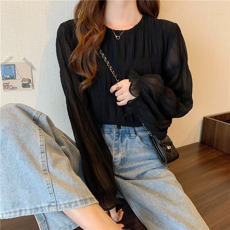 トップス ブラウス 長袖 ラウンドネック プルオーバー ミディアム丈 透け感 かわいい 大人可愛い きれいめ シンプル 上品 おしゃれ かっこいい カジュアル こなれ感 個性的 主役級 ルーズ 存在感 抜け感 春 秋 ベーシック ナチュラル キュート フェミニン 清楚 無地 女性用 レディース ママ OL 通勤 オフィス 学生 通学 デート お出かけ お泊まり 女子会 旅行 休日 カフェ ショッピング コンパ イベント 普段使い デイリー 着回し 重ね着 M L XL 2XL 3XL 4XL モテ | SPARKJOY レディースファッション
