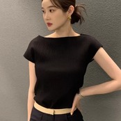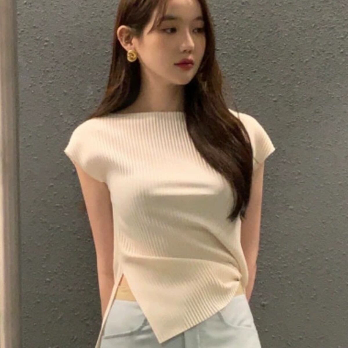 トップス ニットソー 半袖 ボートネック プルオーバー ショート丈 サイドスリット アシンメトリー かわいい 大人可愛い きれいめ シンプル 上品 おしゃれ かっこいい カジュアル こなれ感 個性的 主役級 ルーズ 存在感 抜け感 春 夏 ベーシック ナチュラル キュート クール 無地 女性用 レディース ママ OL 通勤 オフィス 学生 通学 デート お出かけ お泊まり 女子会 旅行 休日 アウトドア カフェ ショッピング コンパ イベント 普段使い デイリー 着回し 重ね着 ワンサイズ トレンド モテ | SPARKJOY レディースファッション