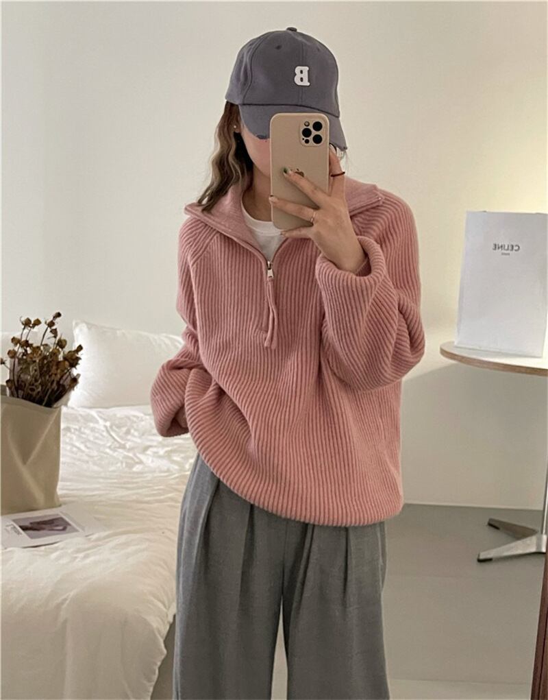 トップス セーター ニットセーター 長袖 襟付き ハーフジップ 2way ハイネック プルオーバー ミディアム丈 かわいい 大人可愛い きれいめ シンプル 上品 おしゃれ かっこいい カジュアル こなれ感 個性的 主役級 ラフ ルーズ 存在感 抜け感 秋 冬 ベーシック ナチュラル キュート クール メンズライク 無地 女性用 レディース ママ OL 通勤 オフィス 学生 通学 デート お出かけ お泊まり 女子会 旅行 休日 カフェ ショッピング コンパ 普段使い デイリー 着回し 重ね着 ワンサイズ | SPARKJOY レディースファッション