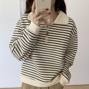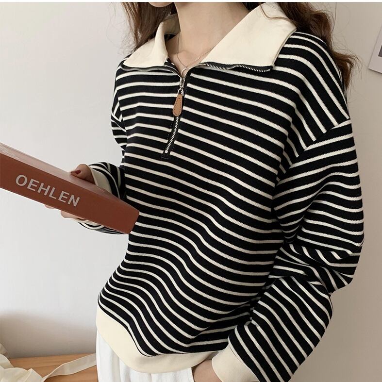 トップス セーター 長袖 襟付き ハーフジップ ポロカラー プルオーバー ミディアム丈 かわいい 大人可愛い きれいめ シンプル 上品 おしゃれ かっこいい カジュアル こなれ感 個性的 主役級 ルーズ 存在感 抜け感 秋 冬 ベーシック ナチュラル キュート クール ボーダー 女性用 レディース ママ OL 通勤 オフィス 学生 通学 デート お出かけ お泊まり 女子会 旅行 休日 アウトドア カフェ ショッピング コンパ イベント 普段使い デイリー 着回し 重ね着 S M L トレンド モテ | SPARKJOY レディースファッション