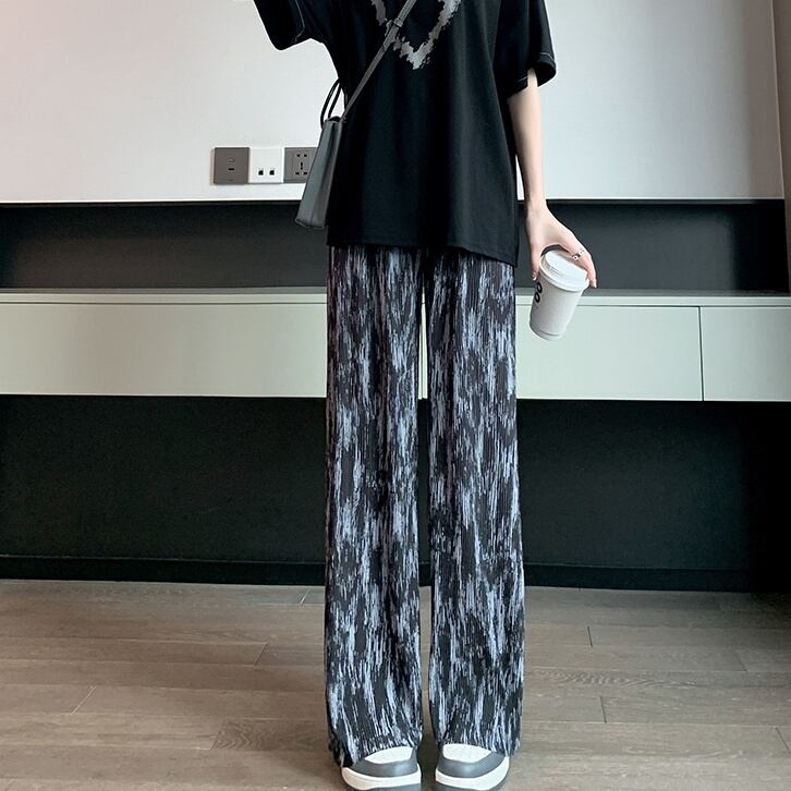 リラックスしたシルエットが特徴のこのパンツは、ウエストゴムで快適に着用でき、カジュアルからきれいめまで幅広いスタイルに合わせやすいのが魅力です。