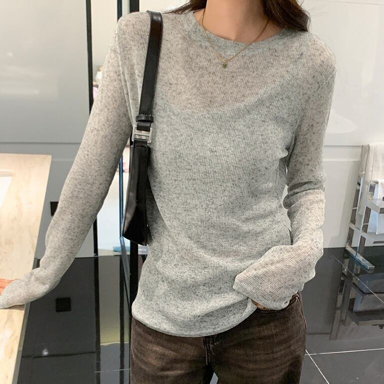 トップス カットソー 長袖 クルーネック プルオーバー ミディアム丈 透け感 かわいい 大人可愛い きれいめ シンプル 上品 おしゃれ かっこいい カジュアル こなれ感 個性的 主役級 存在感 抜け感 春 夏 ベーシック ナチュラル キュート クール メンズライク 無地 女性用 レディース ママ OL 通勤 オフィス 学生 通学 デート お出かけ お泊まり 女子会 旅行 休日 カフェ ショッピング コンパ イベント 普段使い デイリー 着回し 重ね着 S M L XL 日焼け防止 モテ トレンド | SPARKJOY レディースファッション