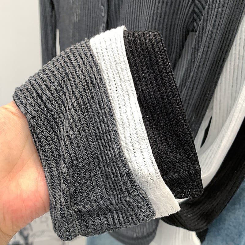 ラウンドネックにハーフボタンのデザインが特徴的で、シースルー感のある素材は春夏のスタイルにぴったり。