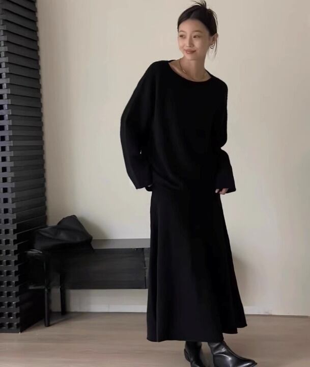 セットアップ 2点セット セーター 長袖 ラウンドネック プルオーバー ミディアム丈 ロングスカート フレアスカート かわいい 大人可愛い きれいめ シンプル 上品 おしゃれ かっこいい カジュアル こなれ感 個性的 主役級 ラフ ルーズ 存在感 抜け感 秋 冬 ベーシック ナチュラル キュート フェミニン 無地 女性用 レディース ママ OL 通勤 オフィス 学生 通学 デート お出かけ お泊まり 女子会 旅行 休日 カフェ ショッピング コンパ 普段使い デイリー 着回し 重ね着 S M L XL | SPARKJOY レディースファッション