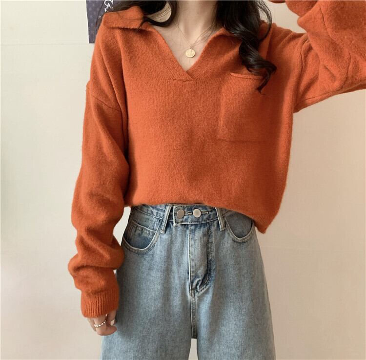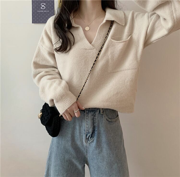 トップス セーター 長袖 襟付き ソリッドカラー プルオーバー ミディアム丈 胸ポケット かわいい 大人可愛い きれいめ シンプル 上品 おしゃれ かっこいい カジュアル こなれ感 個性的 主役級 存在感 ラフ ルーズ 抜け感 秋 冬 ベーシック ナチュラル クール メンズライク 無地 女性用 レディース ママ マタニティ OL 通勤 オフィス 学生 通学 デート お出かけ お泊まり 女子会 旅行 休日 アウトドア カフェ ショッピング コンパ 普段使い デイリー 着回し ワンサイズ トレンド モテ | SPARKJOY レディースファッション