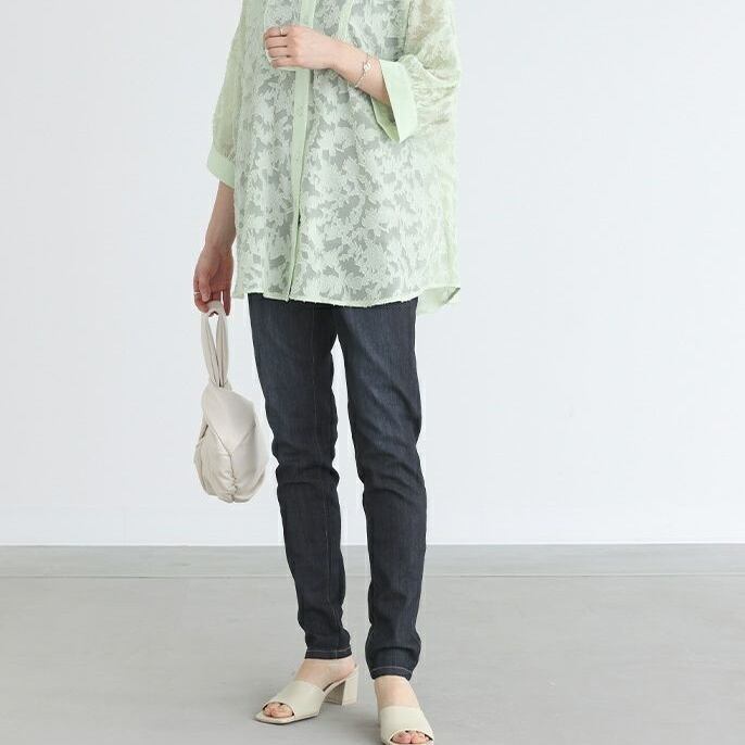 このデニムパンツは、レギンスのような心地よいフィット感を実現しており、ウエストゴムデザインで快適な着用感を提供します。
