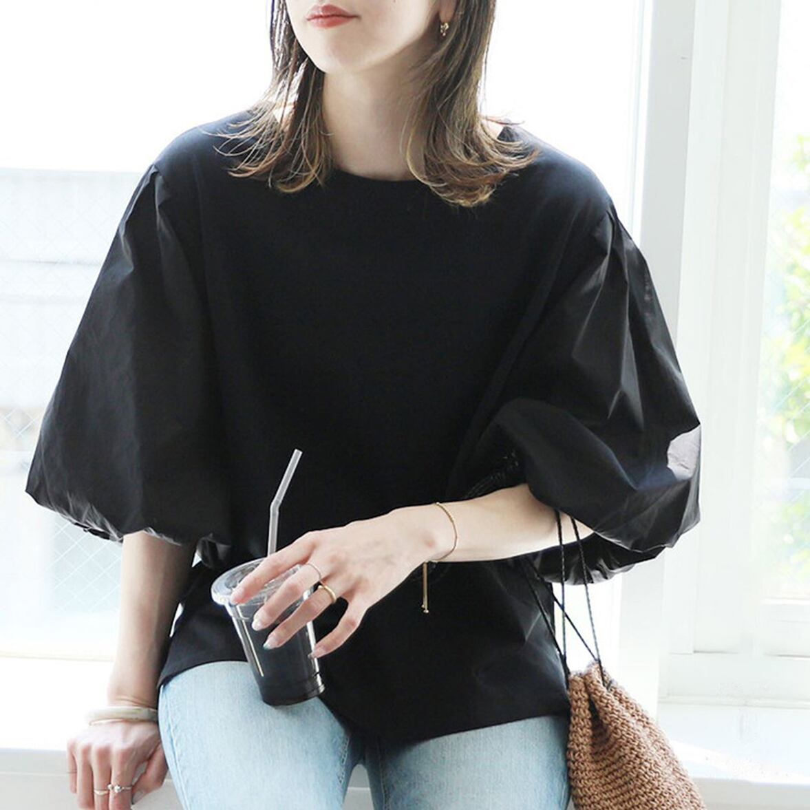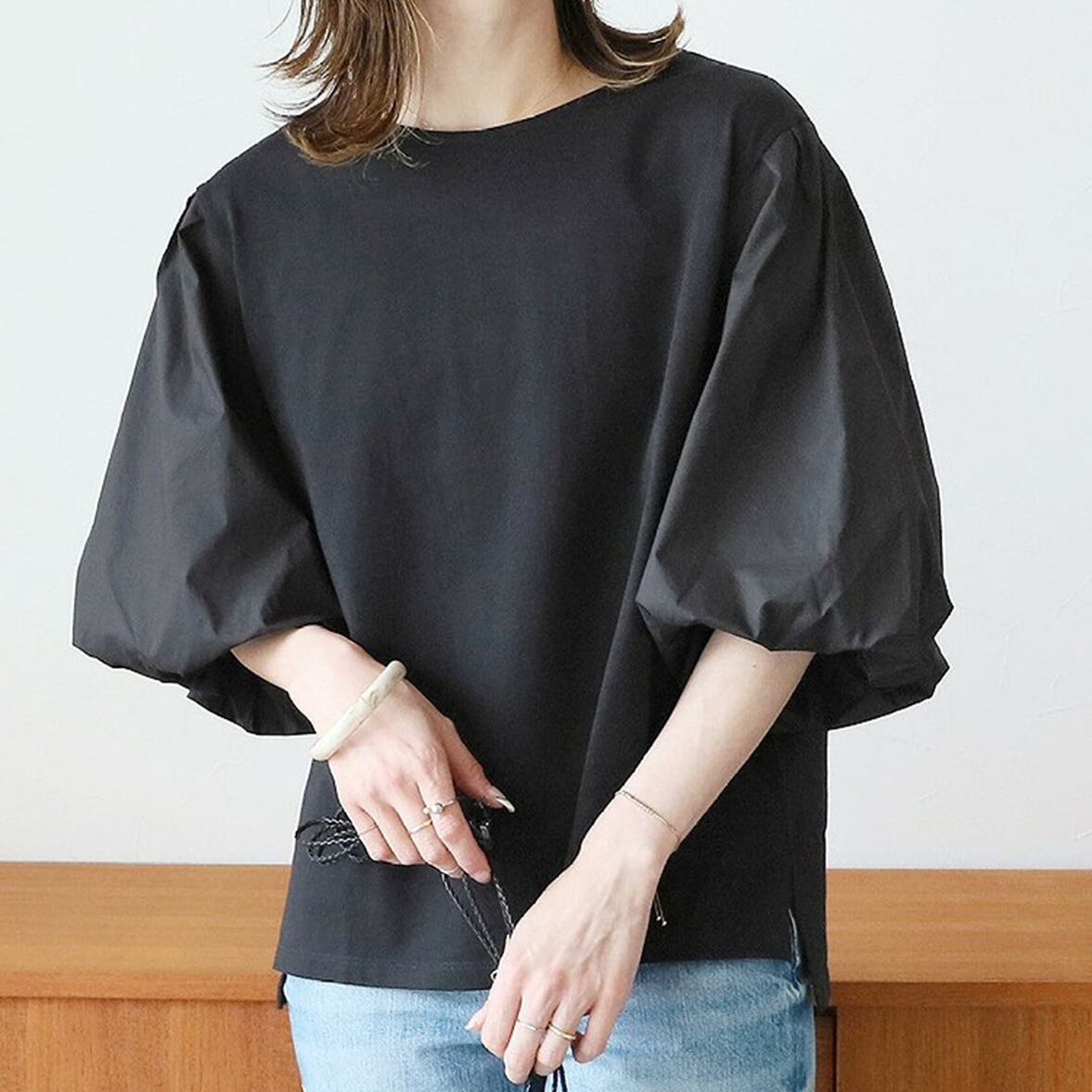 ボリュームたっぷりに膨らんだ袖がアクセントになったシンプルなプルオーバーシャツ。差のつく見た目へ誘導できるコーディネートで実はこれからも可愛く着回せる使い方で可愛い方向に着映えを約束。開放感と相まってきちんと感はそのままのスタイリングにほどよく引き算してスマートな装いにアップデート