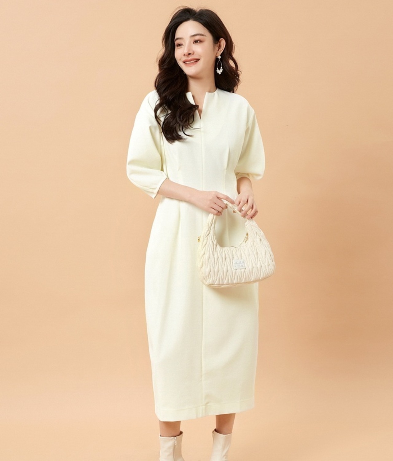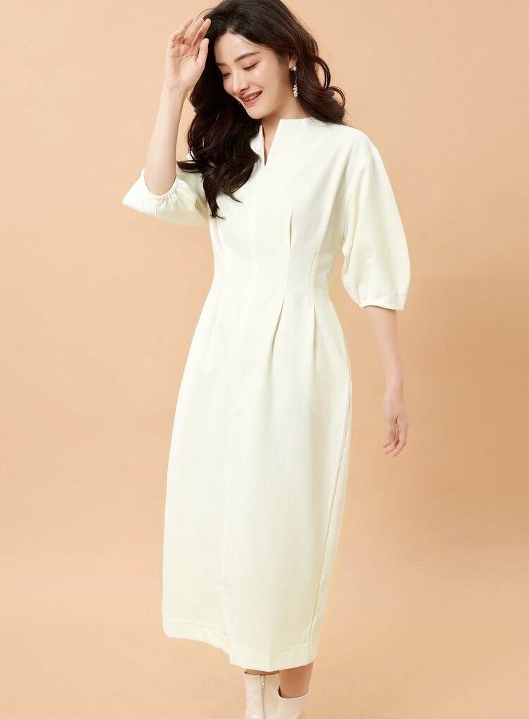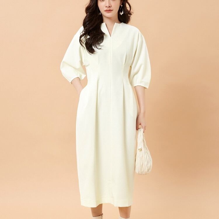 ワンピース ミモレ丈ワンピース 5分袖 ボリューム袖 ハイウエスト ウエストマーク バックスリット ミモレ丈 かわいい 大人可愛い きれいめ シンプル 上品 おしゃれ かっこいい カジュアル こなれ感 個性的 主役級 ラフ 存在感 抜け感 春 夏 ベーシック ナチュラル キュート クール 無地 女性用 レディース ママ マタニティ OL 通勤 学生 通学 デート お出かけ お泊まり 女子会 旅行 休日 カフェ ショッピング コンパ イベント 普段使い デイリー 着回し 重ね着 脚長 S M L XL | SPARKJOY レディースファッション