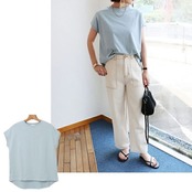ベーシックで多様なシーンで使えながらも小ぶりの袖や絶妙なボディラインで大人の余裕を引き出してくれる半袖Tシャツ。コーディネートは力ませずどこかカッコよさを含んだ女性像でちょうどいいバランスをひもときます。洗練されるフォルムが美形だから女らしさを無理なく印象づけられマインドもラク