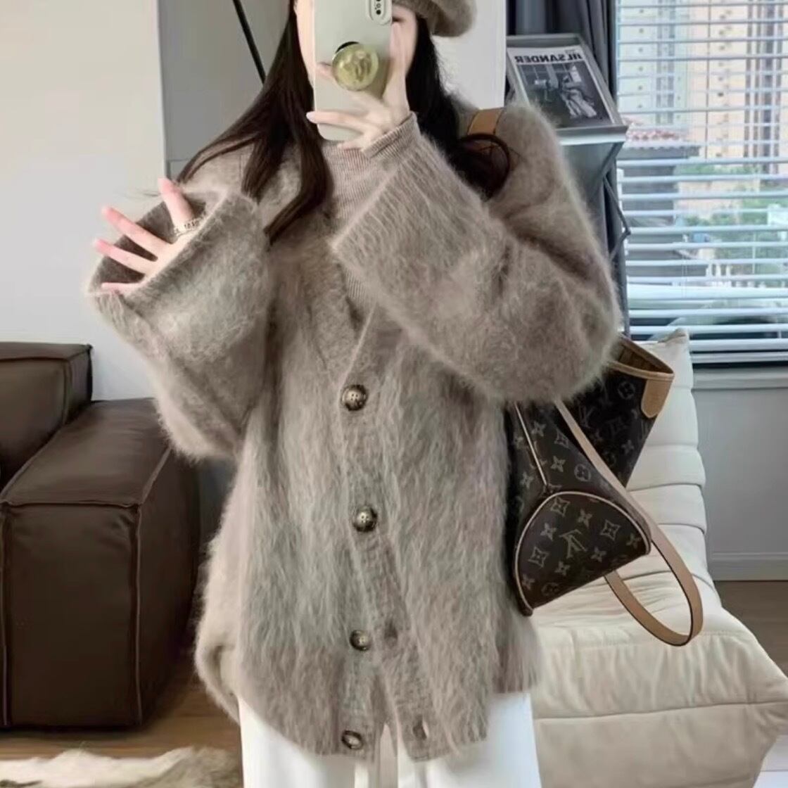 大人可愛いスタイルを演出する、レディース トップスのニットカーディガンが新登場!ミディアム丈で長袖のデザインは、デートやお出かけ、女子会など多様なシーンで活躍します。ふんわりとしたボリューム袖とVネックの襟なしデザインが、シンプルでありながらも個性的で上品な印象を与えます。厚手のモヘアニット素材は、寒い季節にも最適で、着回しが効くアイテムです。カジュアルからレトロ、さらにはモード系まで、様々なコーディネートに合わせてお楽しみいただけます!
