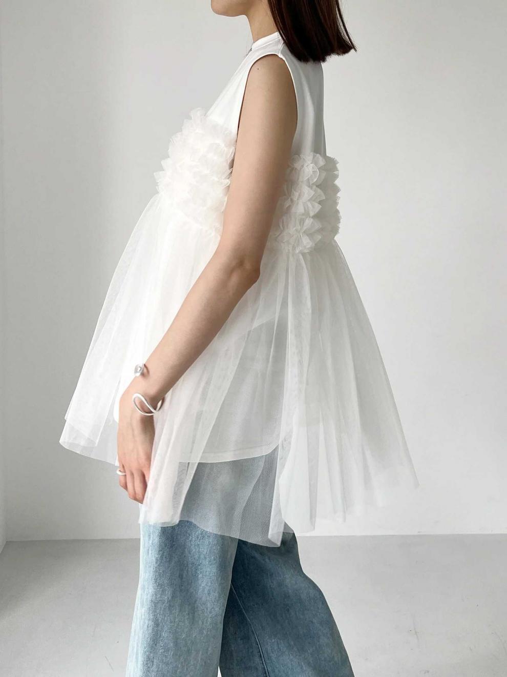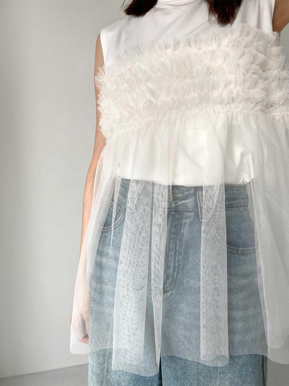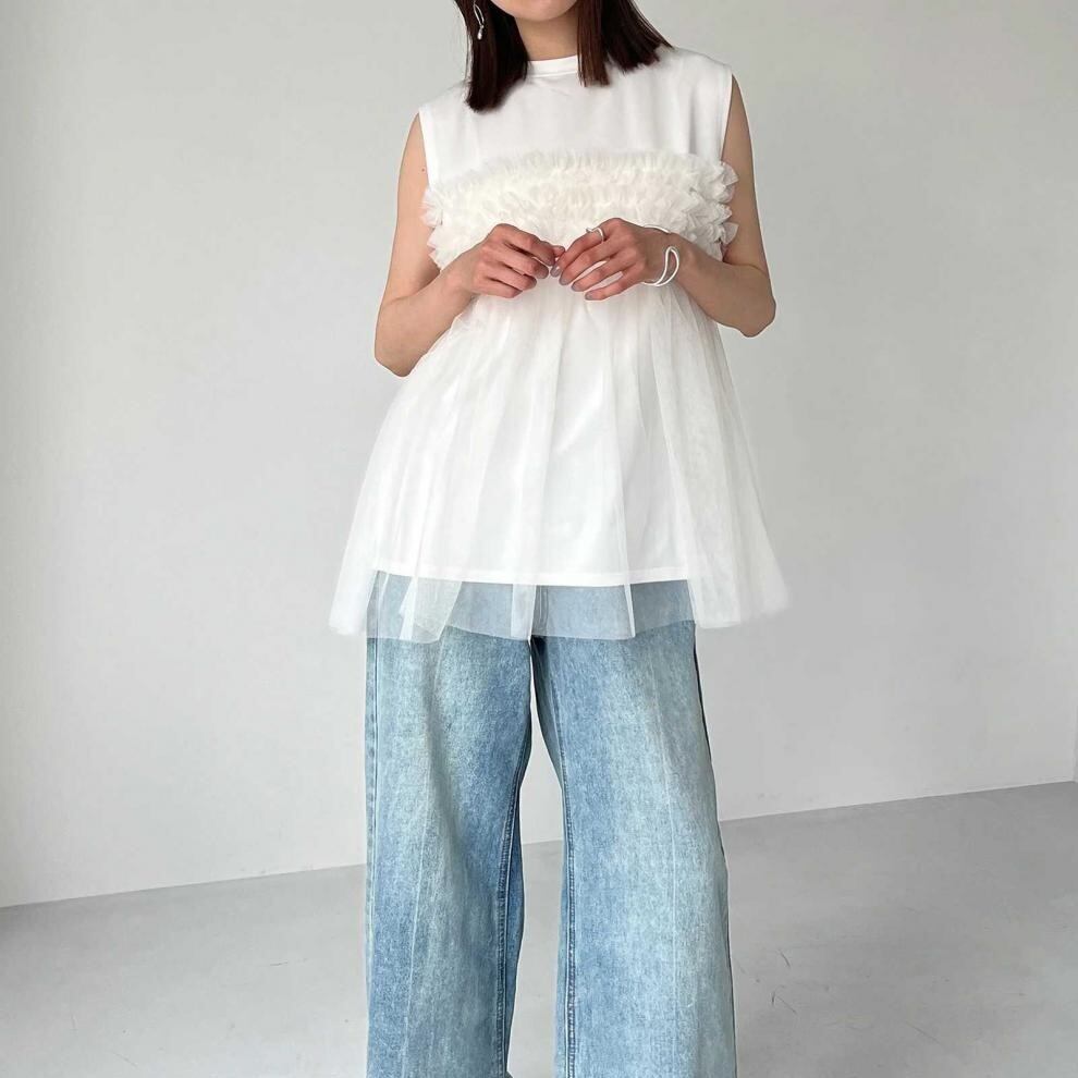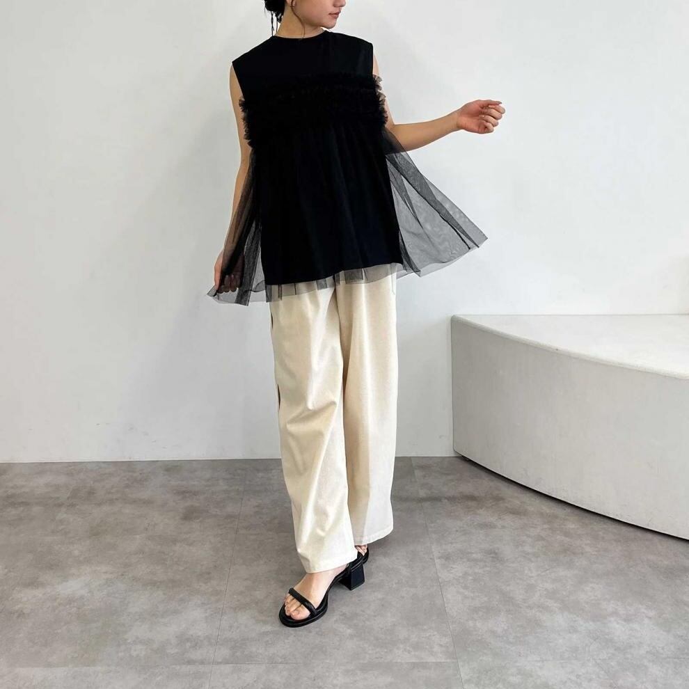 レディース トップス カットソー ノースリーブ ラウンドネック フレア チュール シフォン 切り替えデザイン かわいい 大人可愛い きれいめ シンプル 上品 おしゃれ こなれ感 ガーリー ルーズ 個性的 抜け感 キュート 都会的 ベーシック カントリー ナチュラル 無地 春 夏 ママ デート お出かけ お泊まり パーティー イベント リゾート 旅行 レストラン 女子会 休日 ホテル ショッピング 重ね着 普段使い 着回し レイヤード モテ 清楚 流行 インスタ映え 定番 ゆったり ゆる フリーサイズ | SPARKJOY レディースファッション