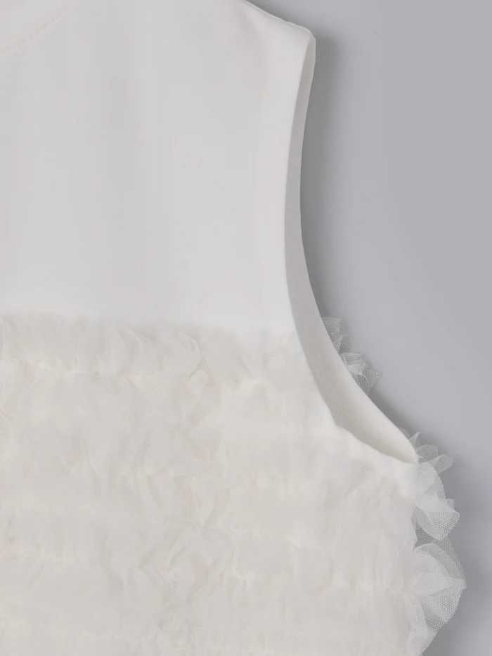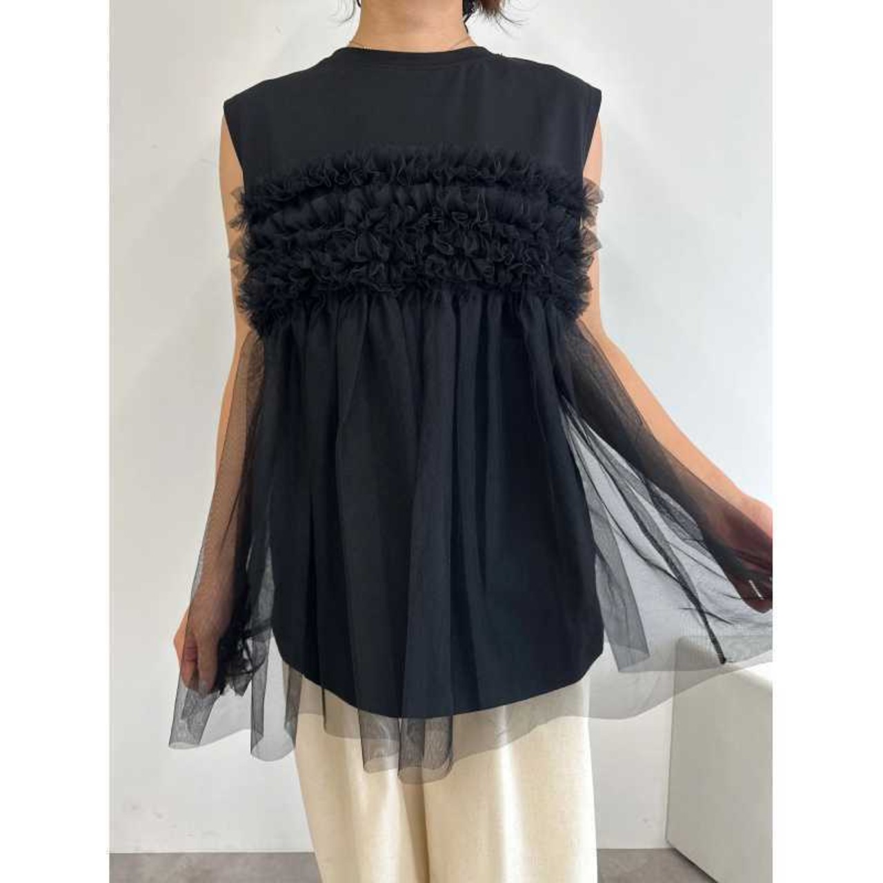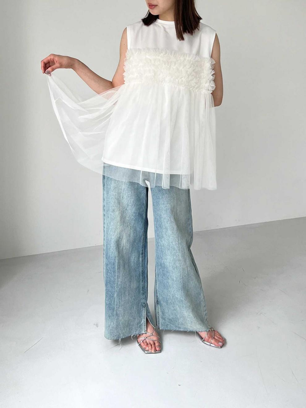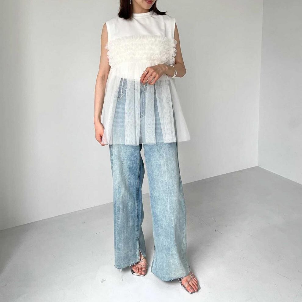 レディース トップス カットソー ノースリーブ ラウンドネック フレア チュール シフォン 切り替えデザイン かわいい 大人可愛い きれいめ シンプル 上品 おしゃれ こなれ感 ガーリー ルーズ 個性的 抜け感 キュート 都会的 ベーシック カントリー ナチュラル 無地 春 夏 ママ デート お出かけ お泊まり パーティー イベント リゾート 旅行 レストラン 女子会 休日 ホテル ショッピング 重ね着 普段使い 着回し レイヤード モテ 清楚 流行 インスタ映え 定番 ゆったり ゆる フリーサイズ | SPARKJOY レディースファッション