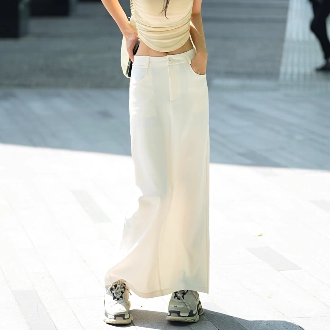 レディース スカート スキニースカート ロング タイト スリム 細身 ストレート Iライン バックコンシャス ファスナー ポケット ボタン 大人可愛い シンプル 無地 デート お出かけ お泊まり パーティー イベント リゾート 旅行 レストラン 女子会 休日 ショッピング コンサート ライブ 合コン コンパ カフェ フェス アースカラー モノトーン 韓国 オルチャン コーデ 楽ちん 体型カバー 美脚 脚長 普段使い 着回し モテ トレンド 流行 インスタ映え 定番 S M L ホワイト ブラック グレー | SPARKJOY レディースファッション