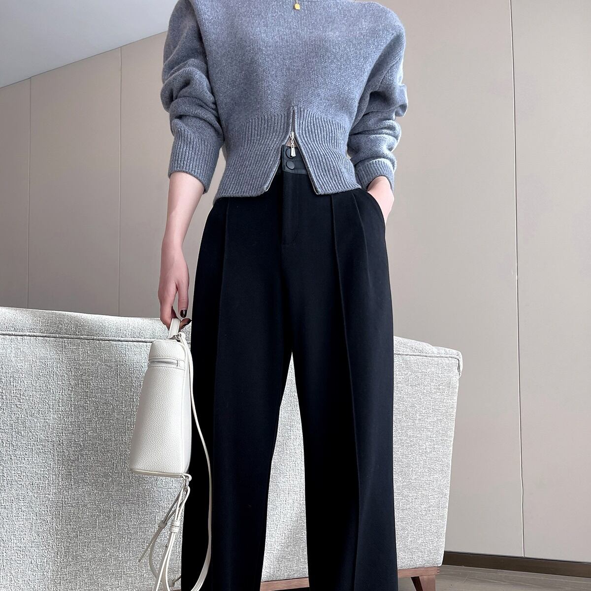 クルーネックのデザインが首元をすっきりと見せ、洗練された雰囲気を演出します。