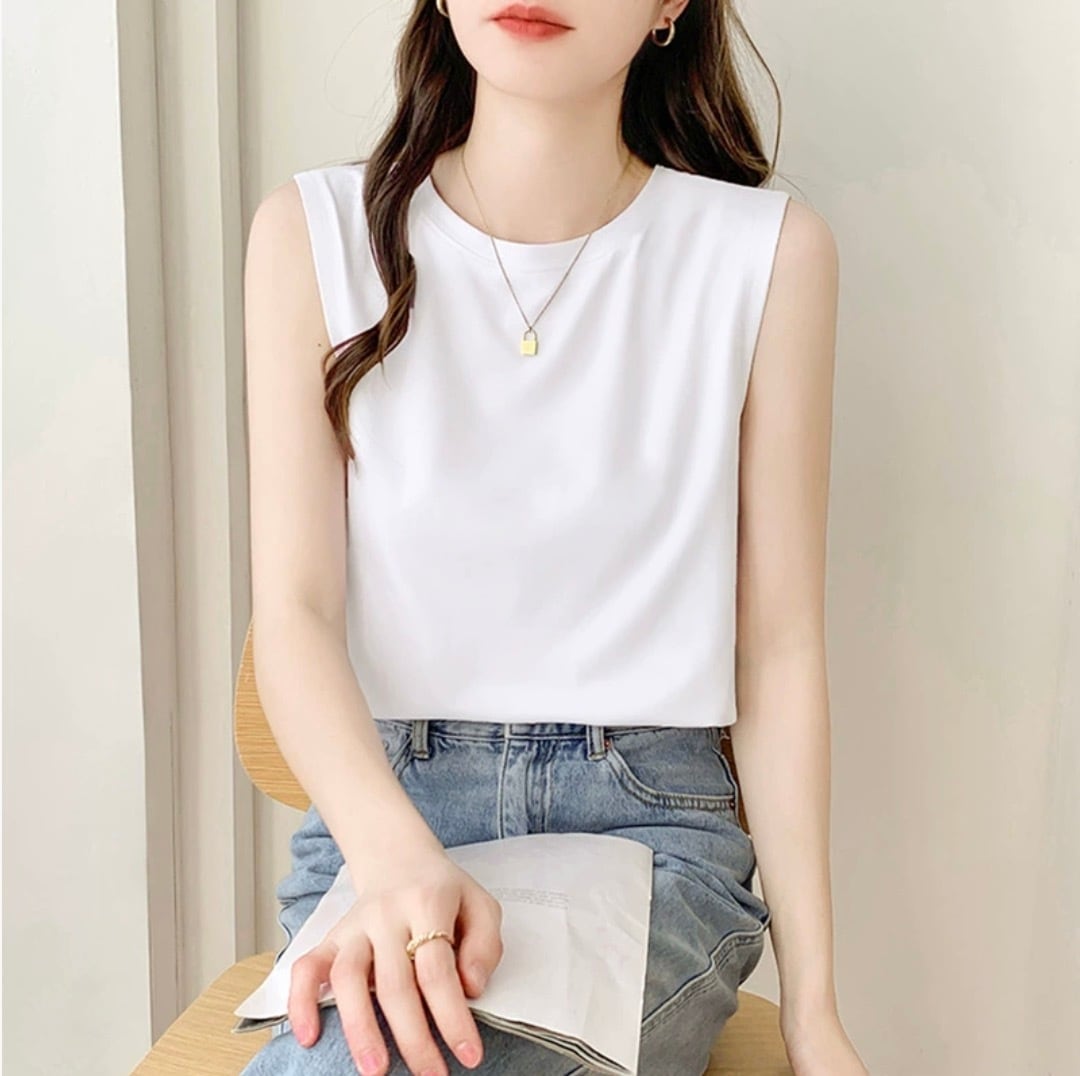 レディース トップス カットソー デート 白トップス ミディアム丈 袖なし ノースリーブ ラウンドネック クルーネック 襟なし スマート 伸縮性 かわいい 大人可愛い きれいめ シンプル カジュアル 上品 おしゃれ お洒落 レトロ 大人女子 こなれ感 ラフ ラブリー キュート ガーリー 個性的 クール モード系 エレガント モダン 主役級 存在感 抜け感 無地 レディース デート お出かけ 女子会 休日 着回し 普段使い ファッション コーデ スタイル モテ プレゼント 定番 トレンド 色展開 | SPARKJOY レディースファッション