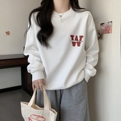 レディース トップス パジャマ プルオーバー パーカー トレーナー スウェット 部屋着 フリース 長袖 ラウンドネック 細身 ストリート シンプル ラフ メンズライク マニッシュ ボーイッシュ ロゴ 秋 冬 ペア 男女兼用 ユニセックス ママ マタニティ カップル デート お出かけ お泊まり 公園 女子会 休日 重ね着 お揃い 韓国 オルチャン コーデ 楽ちん 暖かい 防寒 体型カバー 普段使い 着回し インスタ映え M L XL 2XL 3XL 大きいサイズ ゆったり ゆる ホワイト ブラック ベージュ | SPARKJOY レディースファッション