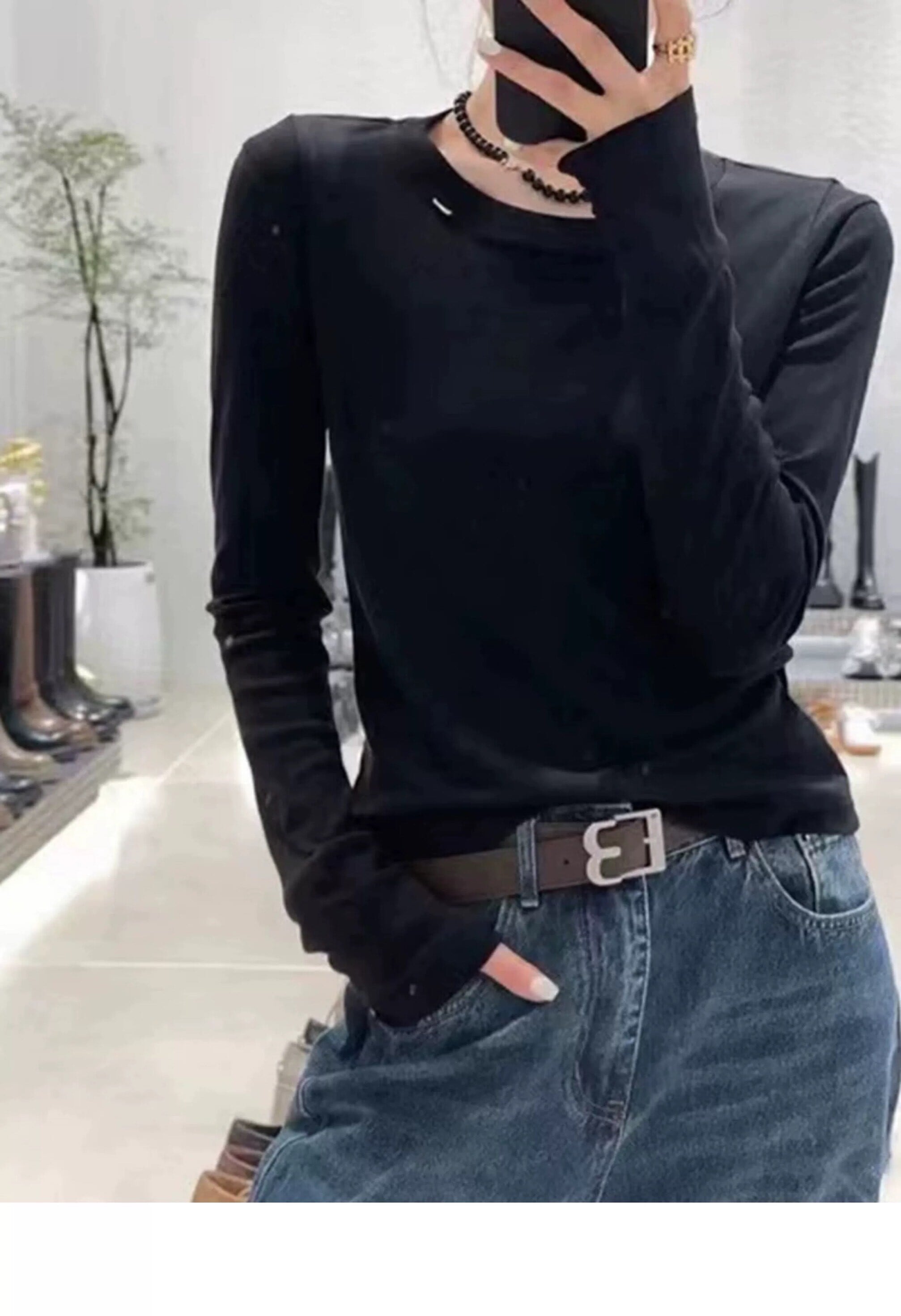 レディース トップス ロンT カットソー 部屋着 長袖 Uネック ラウンドネック 襟なし タイト スリム 細身 ストレート 伸縮性 ストレッチ 大人可愛い シンプル カジュアル 上品 ラフ ボーイッシュ ルーズ クール ベーシック アクティブ ナチュラル 無地 春 秋 ペア ユニセックス お出かけ アウトドア 旅行 公園 休日 ショッピング 重ね着 韓国 コーデ 楽ちん 普段使い 着回し 清楚 S M L XL 2XL 黒 茶色 ダークグレー ベーシックカラー 大人カラー 春カラー 秋カラー | SPARKJOY レディースファッション