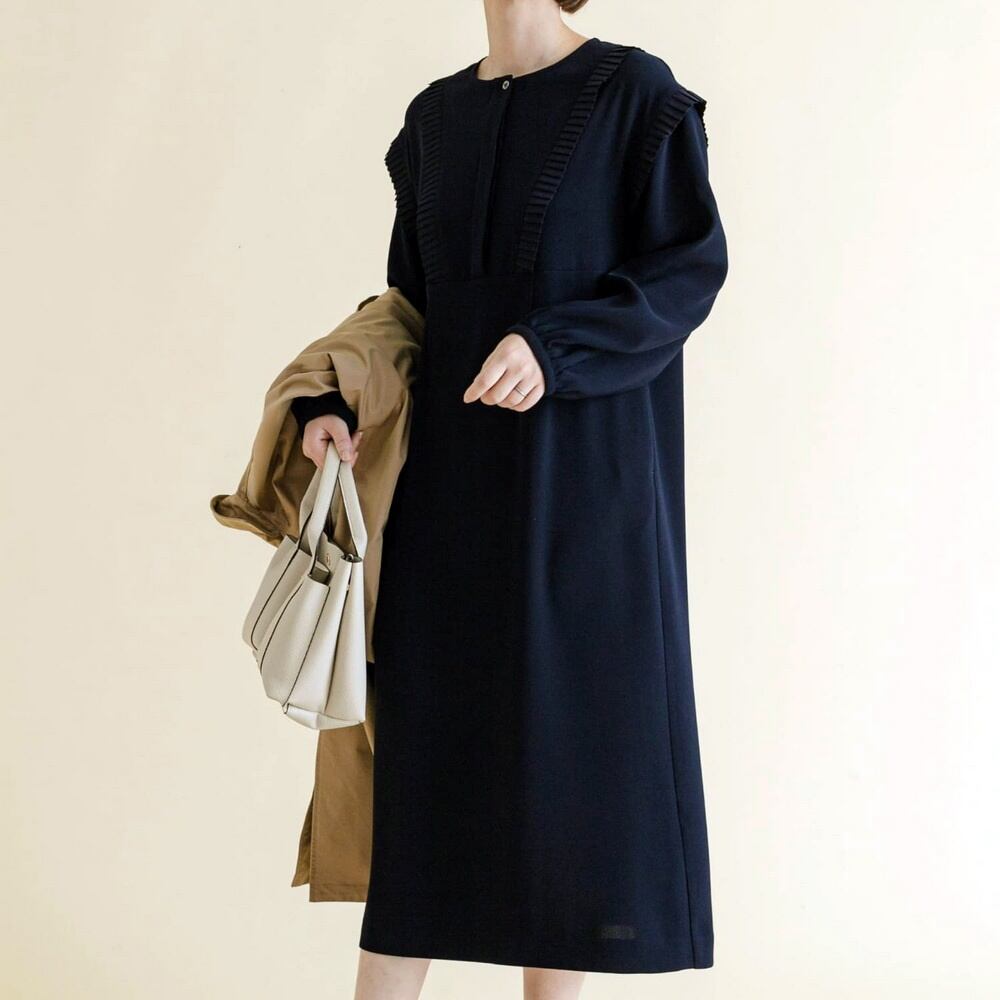 レディース ワンピース フレア 膝下 ミモレ 8分丈 長袖 ラウンドネック フェミニン フリル ファスナー 大人可愛い きれいめ シンプル 上品 おしゃれ 個性的 クール エレガント モダン 無地 オールシーズン 授業参観 大会 会議 MTG ミーティング プレゼン オフィス ビジネス OL 通勤 お出かけ レストラン 休日 高原 ホテル ガーデン ショッピング 発表会 婚活 モノトーン 韓国 オルチャン コーデ 楽ちん 体型カバー 美脚 脚長 モテ 清楚 トレンド S M ゆったり ゆる ネイビー | SPARKJOY レディースファッション