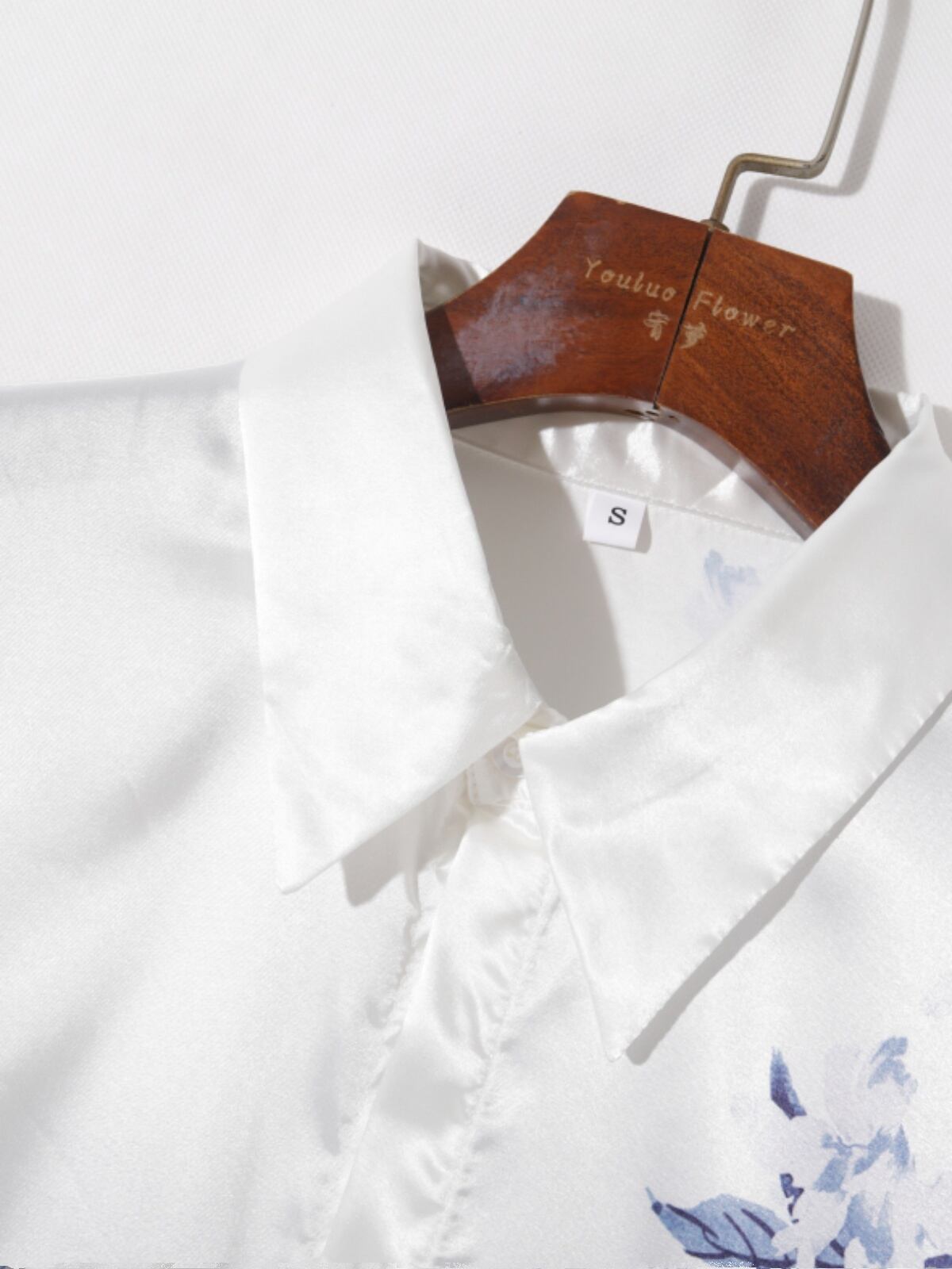トップス シャツ 白シャツ 長袖 襟付き 前開き ボタン ミディアム丈 光沢 かわいい 大人可愛い きれいめ シンプル 上品 おしゃれ かっこいい カジュアル こなれ感 個性的 主役級 存在感 抜け感 オールシーズン ベーシック ナチュラル クール エレガント フォーマル 花柄 女性用 レディース ママ OL 通勤 オフィス 学生 通学 デート お出かけ お泊まり 女子会 旅行 アウトドア 休日 カフェ ショッピング コンパ イベント 普段使い デイリー 着回し 重ね着 S M L トレンド モテ | SPARKJOY レディースファッション