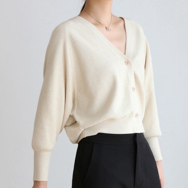 トップス カーディガン 長袖 Vネック 前開き ボタン ショート丈 ドルマンスリーブ マトンスリーブ かわいい 大人可愛い きれいめ シンプル 上品 おしゃれ かっこいい カジュアル こなれ感 個性的 ラフ ルーズ 主役級 存在感 抜け感 春 秋 ベーシック ナチュラル フェミニン 無地 女性用 レディース ママ OL 通勤 オフィス 学生 通学 デート お出かけ お泊まり 女子会 旅行 アウトドア 休日 カフェ ショッピング コンパ イベント 普段使い デイリー 着回し 重ね着 ワンサイズ トレンド | SPARKJOY レディースファッション