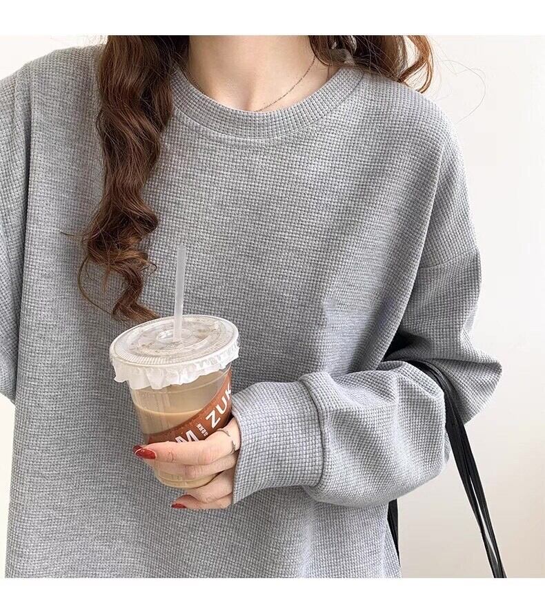 季節の変わり目にぴったりなこのワッフルトレーナーは、萌袖デザインとラウンドネックがかわいらしさと大人の女性らしさを引き立てます。