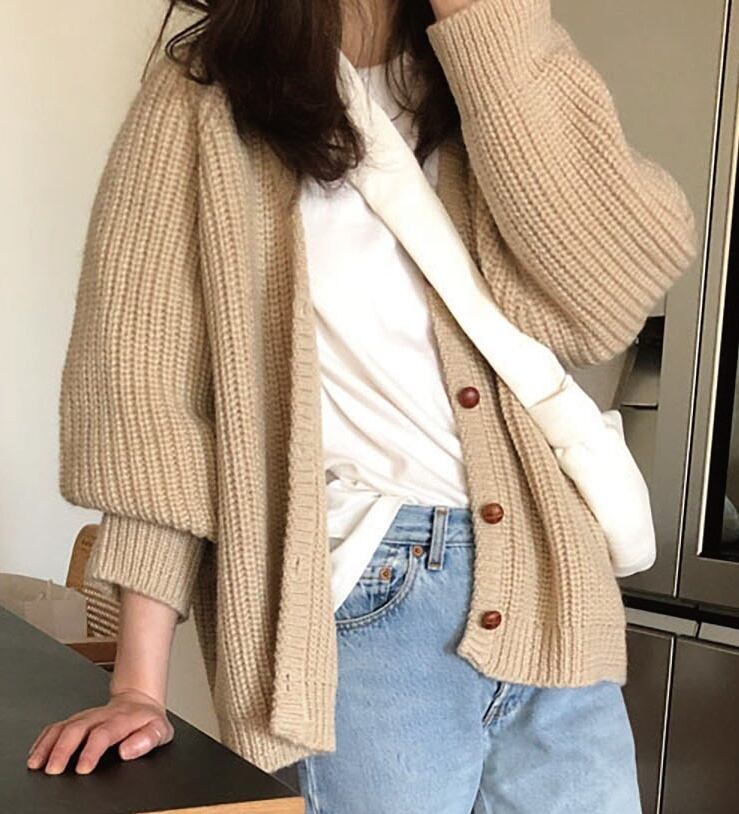 ボリューム袖が魅力の長袖カーディガン