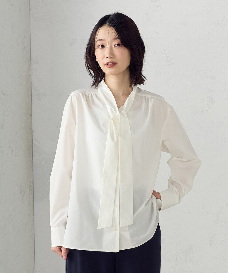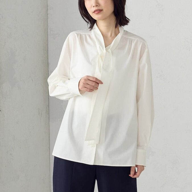 トップス シャツ 長袖 ハイネック リボン 前開き ボタン ミディアム丈 かわいい 大人可愛い きれいめ シンプル 上品 おしゃれ かっこいい カジュアル こなれ感 個性的 きちんと 主役級 存在感 抜け感 春 夏 ベーシック ナチュラル フェミニン 清楚 フォーマル 無地 女性用 レディース ママ OL 通勤 オフィス 学生 通学 デート お出かけ お泊まり 女子会 旅行 アウトドア 休日 カフェ ショッピング ディテー ホテル コンパ イベント 普段使い デイリー 着回し 重ね着 トレンド モテ | SPARKJOY レディースファッション