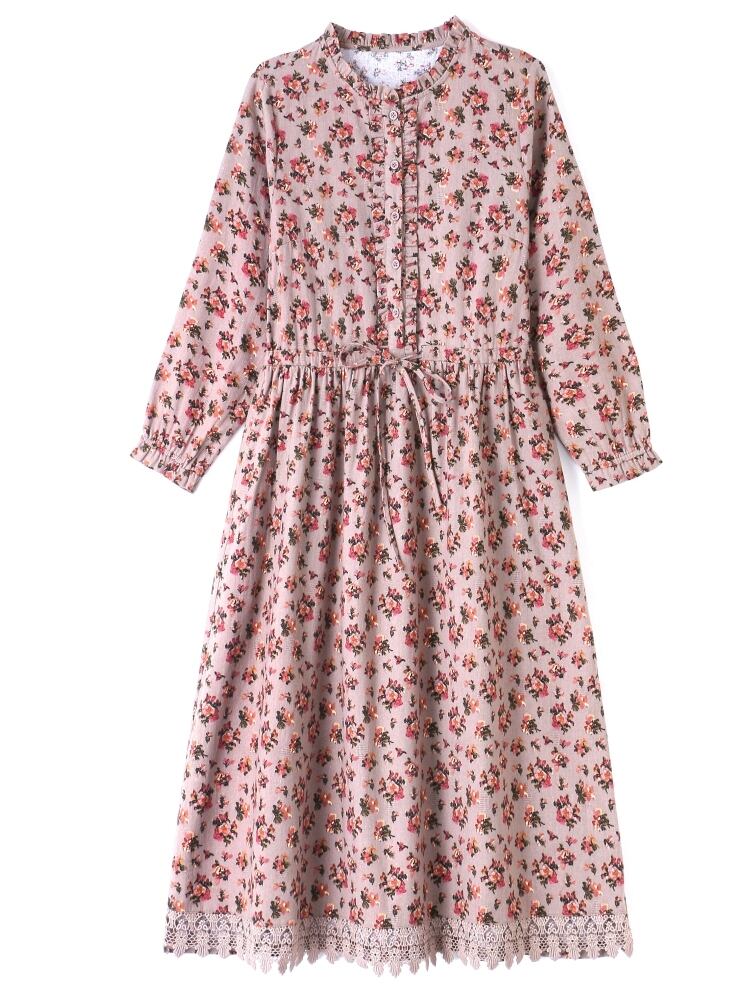 ワンピース ミディアム丈ワンピース 長袖 ハイネック フリル ウエストリボン ポケット ハーフボタン かわいい 大人可愛い きれいめ シンプル 上品 おしゃれ カジュアル こなれ感 個性的 主役級 存在感 抜け感 春 夏 ベーシック ナチュラル キュート フェミニン ガーリー 清楚 小花柄 女性用 レディース ママ OL 通勤 オフィス 学生 通学 デート お出かけ お泊まり 女子会 旅行 休日 カフェ ショッピング コンパ イベント 普段使い デイリー 着回し 重ね着 M L XL 2XL 3XL モテ | SPARKJOY レディースファッション