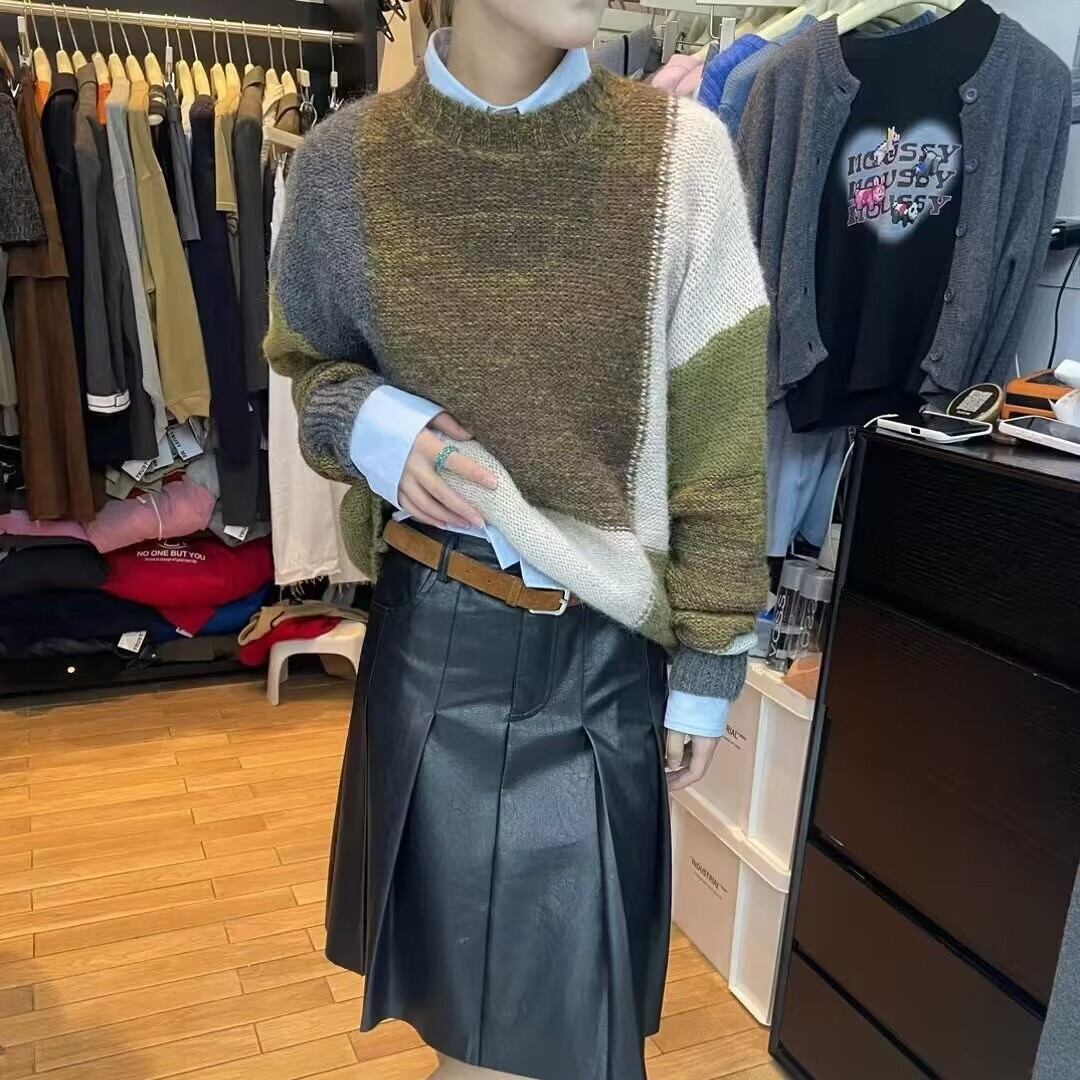 レディース トップス ニット セーター プルオーバー 長袖 ラウンドネック 配色 ブロックカラー かわいい シンプル カジュアル おしゃれ レトロ こなれ感 ラフ メンズライク マニッシュ ボーイッシュ スポーティー ガーリー ルーズ 個性的 クール キュート カレッジ風 学生風 ベーシック アメリカン カントリー アクティブ ナチュラル デート 重ね着 お揃い 双子 韓国 オルチャン コーデ 楽ちん 暖かい 体型カバー 普段使い 着回し レイヤード モテ インスタ映え ゆったり フリーサイズ グリーン | SPARKJOY レディースファッション