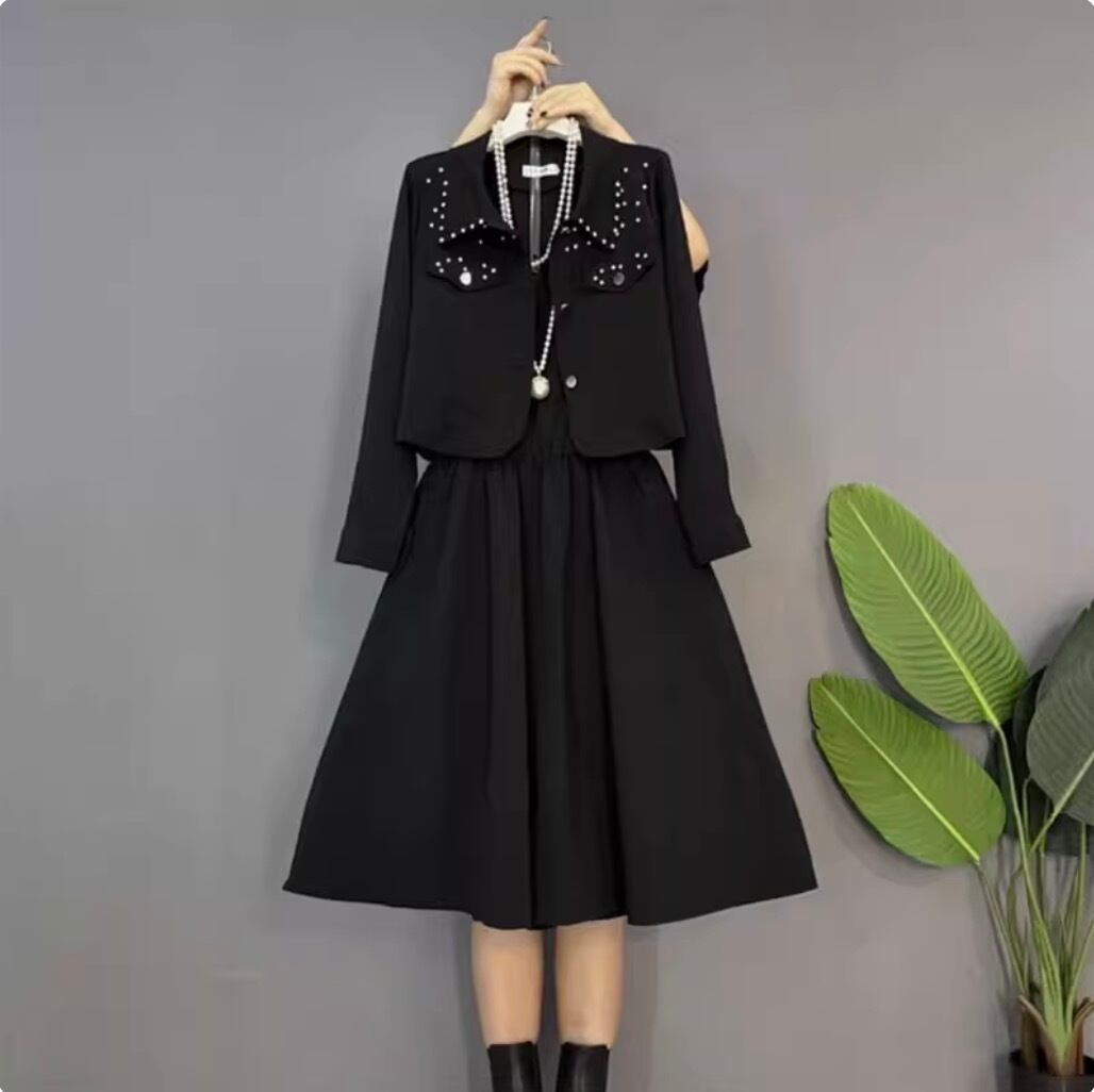 大人可愛い印象を与えるレディーストップスワンピーススーツセットアップが登場しました!デートや女子会にぴったりのロング丈ワンピドレスで、袖ありのデザインが上品さを演出します。襟なしのセミフレアAラインシルエットが体型を美しく見せ、どんなシーンでもお洒落に着こなせるアイテムです。伸縮性のある素材を使用しており、着心地も抜群!シンプルでありながら、主役級の存在感を放つ一着です。