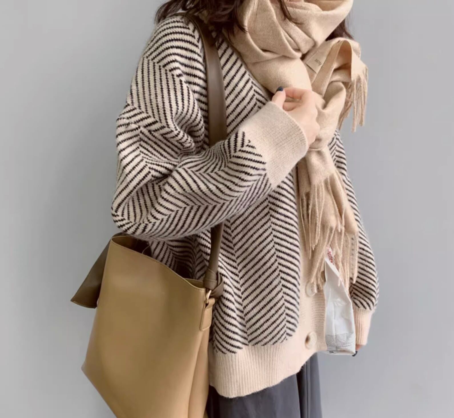 大人可愛い印象を与えるレディースニットカーディガンが登場しました!デートや女子会にぴったりのミディアム丈で、ボリューム袖がトレンド感を演出します。襟なしのデザインが女性らしいラインを引き立て、シンプルでありながらも主役級の存在感を与える一着です。伸縮性のある厚手の素材を使用しており、着心地も抜群!カジュアルからきれいめスタイルまで、幅広いコーディネートに対応できるアイテムです。