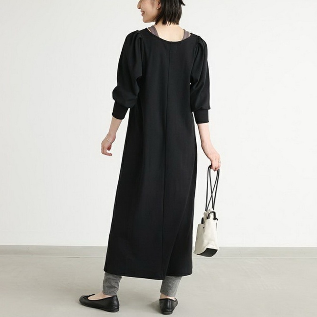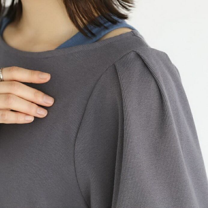長袖とタックスリーブ、マトンスリーブのデザインが特徴で、シンプルながらも存在感のある一着に仕上がっています。