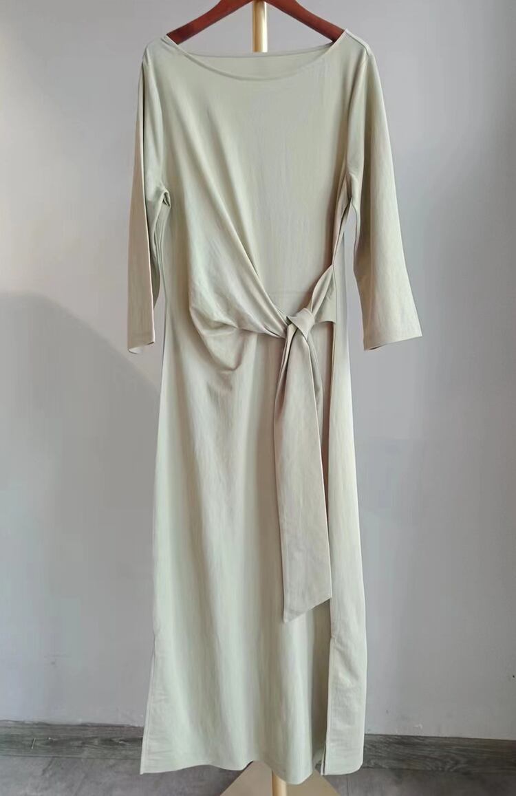 レディース ワンピース 長袖 ラウンドネック リボン 大人可愛い きれいめ シンプル 上品 おしゃれ かっこいい レトロ アジアン エスニック エキゾチック こなれ感 マニッシュ ルーズ 個性的 クール モード系 エレガント モダン 主役級 存在感 とろみ感 抜け感 都会的 ラグジュアリー クラシカル ナチュラル 無地 夏 秋 デート お出かけ 女子会 韓国 オルチャン コーデ 楽ちん 体型カバー 美脚 脚長 普段使い 着回し モテ トレンド 流行 インスタ映え XS S M L XL ネイビー グリーン | SPARKJOY レディースファッション