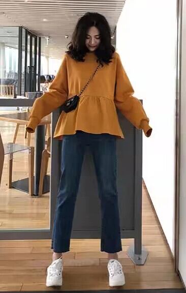 シンプルでありながらおしゃれなレディーストップスです。クルーネックとフレアAラインのデザインは、リラックスした印象を与えつつも女性らしさを引き立てます。萌袖のデザインが可愛さをプラスし、普段使いや特別な日のお出かけにぴったりです。
