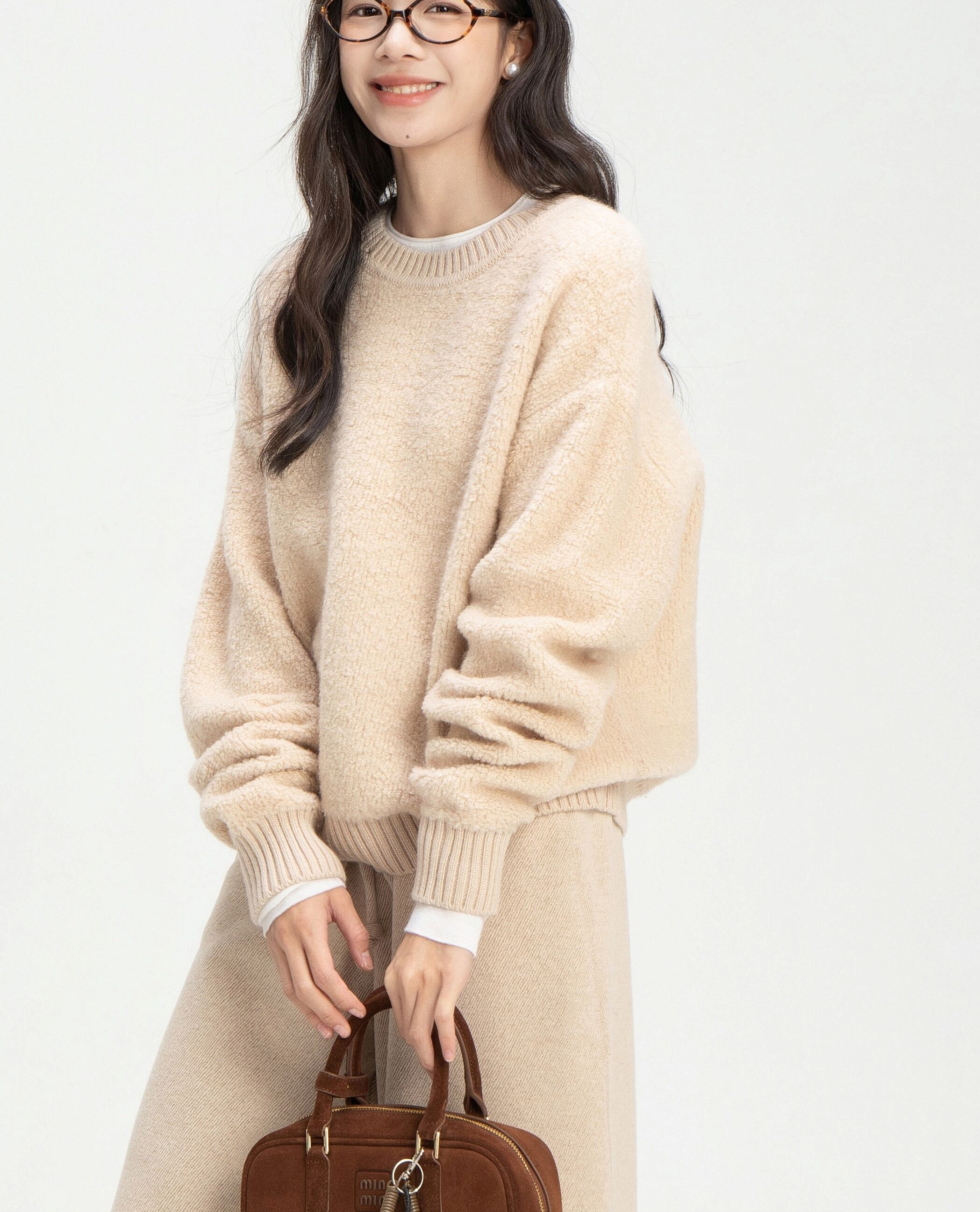 トップス セーター 長袖 ラウンドネック プルオーバー ミディアム丈 ふわふわ かわいい 大人可愛い きれいめ シンプル 上品 おしゃれ かっこいい カジュアル こなれ感 個性的 主役級 存在感 抜け感 秋 冬 ベーシック ナチュラル クール フェミニン 無地 女性用 レディース ママ マタニティ OL 通勤 オフィス 学生 通学 デート お出かけ お泊まり 女子会 旅行 アウトドア 休日 カフェ ショッピング コンパ イベント 普段使い デイリー 着回し 重ね着 S M L トレンド モテ 暖かい | SPARKJOY レディースファッション