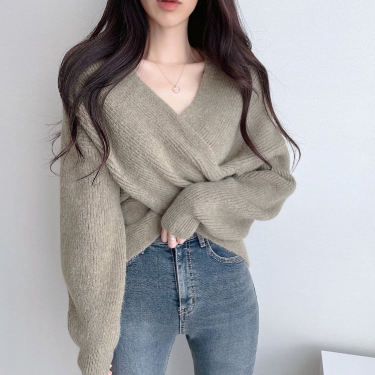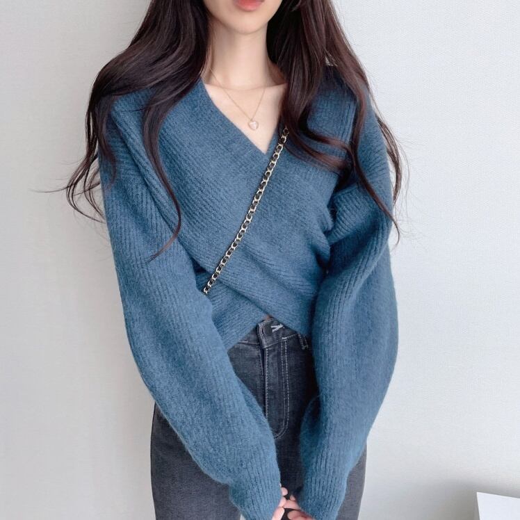 トップス セーター 長袖 ボリューム袖 Vネック プルオーバー ショート丈 クロスデザイン かわいい 大人可愛い きれいめ シンプル 上品 おしゃれ かっこいい カジュアル こなれ感 個性的 ラフ ルーズ 主役級 存在感 抜け感 秋 冬 ベーシック ナチュラル クール フェミニン 無地 女性用 レディース ママ OL 通勤 オフィス 学生 通学 デート お出かけ お泊まり 女子会 旅行 アウトドア 休日 カフェ ショッピング コンパ イベント 普段使い デイリー 着回し 重ね着 ワンサイズトレンド モテ | SPARKJOY レディースファッション