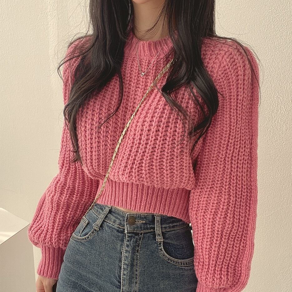 トップス セーター 長袖 ボリューム袖 クルーネック プルオーバー ショート丈 かわいい 大人可愛い きれいめ シンプル 上品 おしゃれ かっこいい カジュアル こなれ感 個性的 主役級 ルーズ 存在感 抜け感 秋 冬 ベーシック ナチュラル フェミニン ガーリー 無地 女性用 レディース ママ OL 通勤 オフィス 学生 通学 デート お出かけ お泊まり 女子会 旅行 休日 カフェ ショッピング コンパ イベント 普段使い デイリー 着回し 重ね着 ワンサイズ トレンド モテ ゆったり 暖かい | SPARKJOY レディースファッション