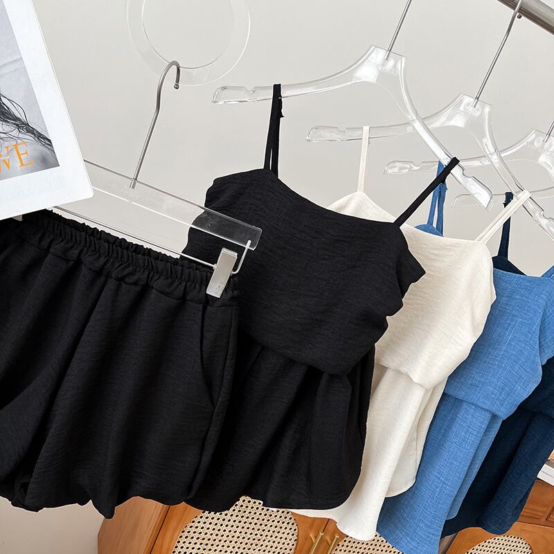 セットアップ 2点セット キャミソール 重ね着風 ミディアム丈 ショートパンツ ウエストゴム ポケット かわいい 大人可愛い きれいめ シンプル 上品 おしゃれ かっこいい カジュアル こなれ感 ラフ ルーズ 個性的 主役級 存在感 抜け感 オールシーズン ベーシック ナチュラル キュート フェミニン 無地 女性用 レディース ママ OL 通勤 学生 通学 デート お出かけ お泊まり 女子会 旅行 休日 カフェ ショッピング コンパ イベント 普段使い デイリー 着回し 重ね着 ワンサイズ トレンド モテ | SPARKJOY レディースファッション
