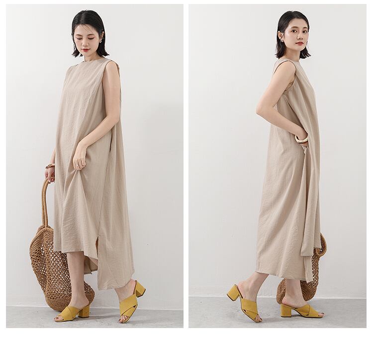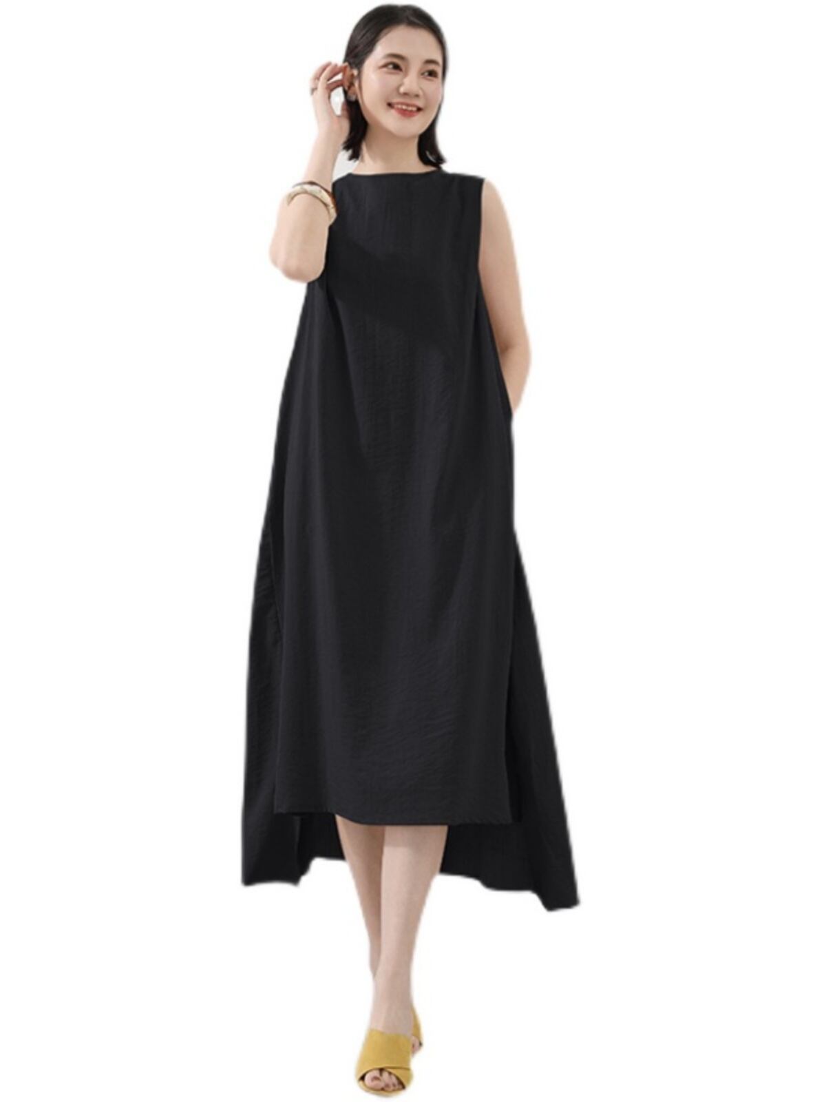 アンバランスヘム レディース ワンピース 膝上 ミモレ ロング 袖なし ノースリーブ クルーネック 襟なし セミフレア Aライン オーバーサイズ サイドスリット バックコンシャス ポケット 大人可愛い きれいめ シンプル カジュアル 上品 おしゃれ こなれ感 ラフ ルーズ 抜け感 ベーシック ナチュラル 無地 春 夏 ママ マタニティ デート お出かけ リゾート 旅行 ビーチ 女子会 休日 バカンス 楽ちん 体型カバー 普段使い ゆったり ゆる フリーサイズ ブラック グレー ベージュ ネイビー グリーン | SPARKJOY レディースファッション