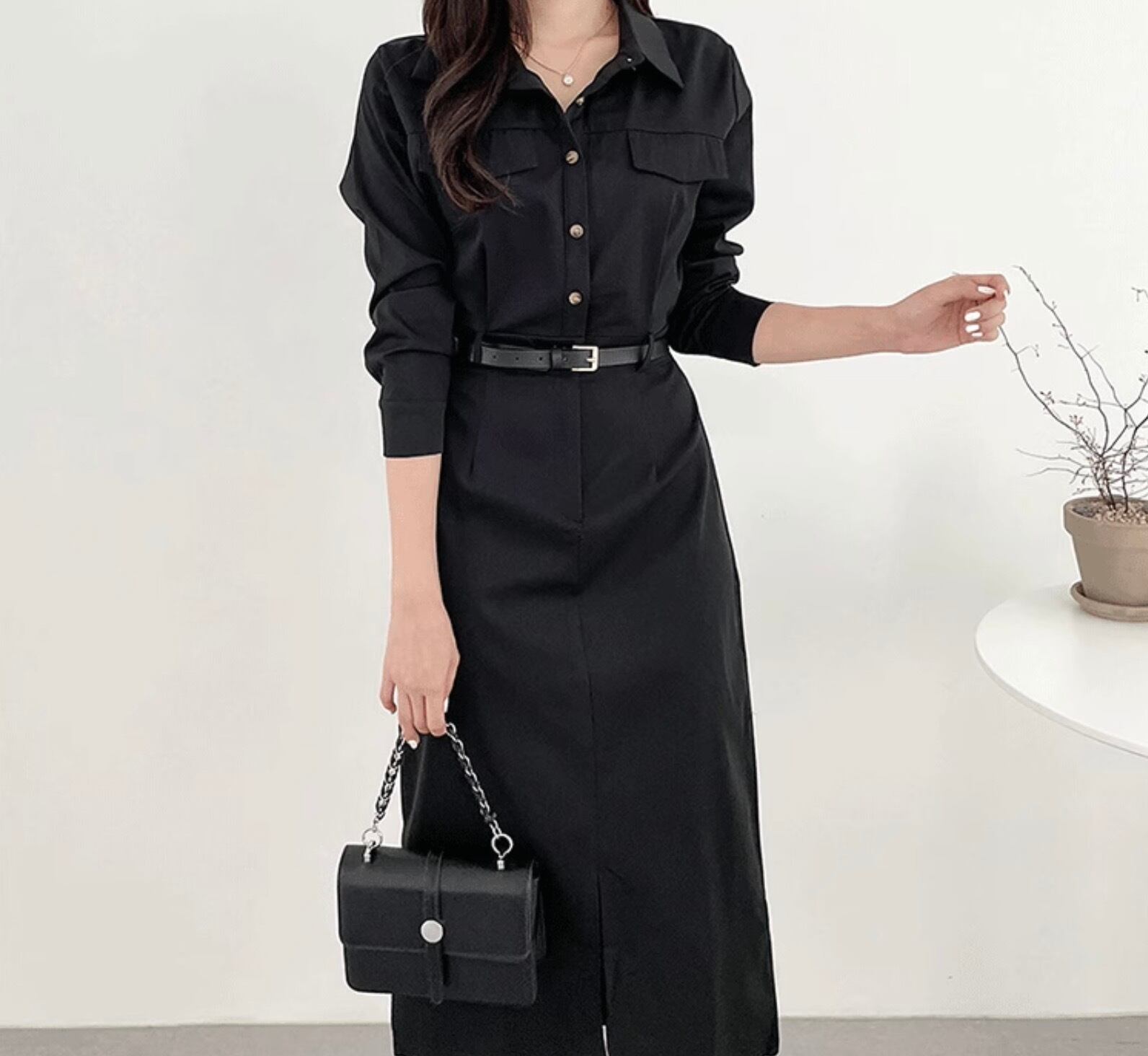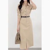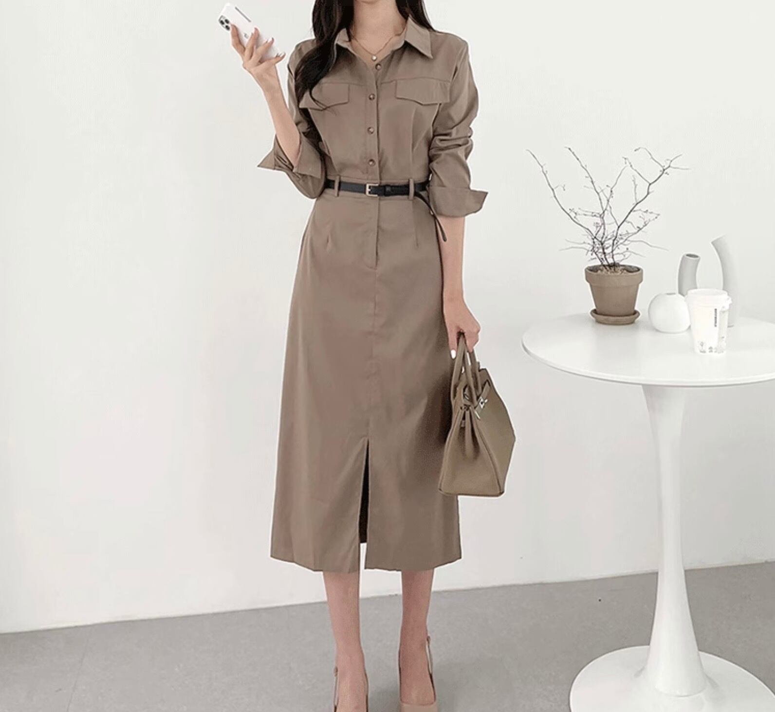 レディース ワンピース デート ロングスカート ペンシルスカート シャツワンピース ワンピドレス ミモレ ミモレ丈 ミディアム丈 袖あり 長袖 襟付き スリム Iライン 切り替えデザイン ベルト ウエストマーク スリット ポケット 前開き 伸縮性 かわいい 大人可愛い きれいめ シンプル カジュアル 上品 おしゃれ お洒落 レトロ 大人女子 こなれ感 ラフ 個性的 クール モード系 エレガント モダン 主役級 存在感 抜け感 無地 レディース デート お出かけ 女子会 休日 着回し 普段使い | SPARKJOY レディースファッション