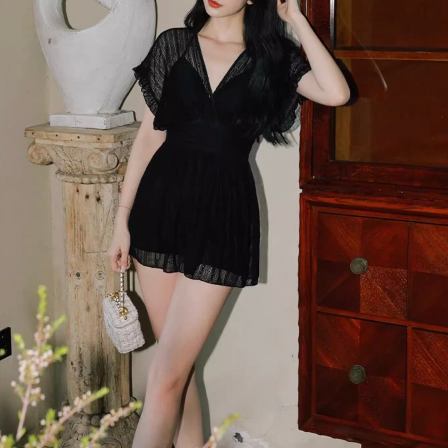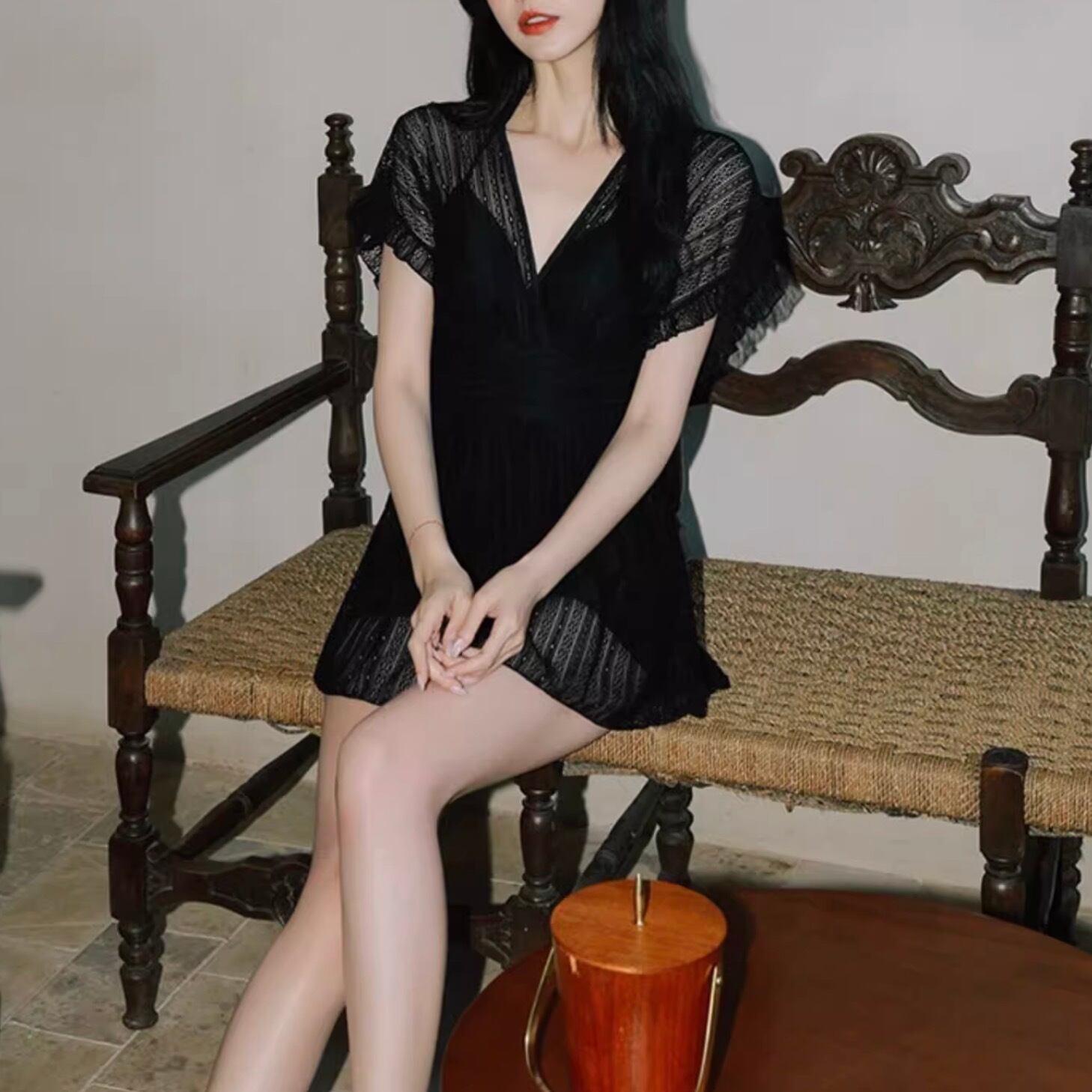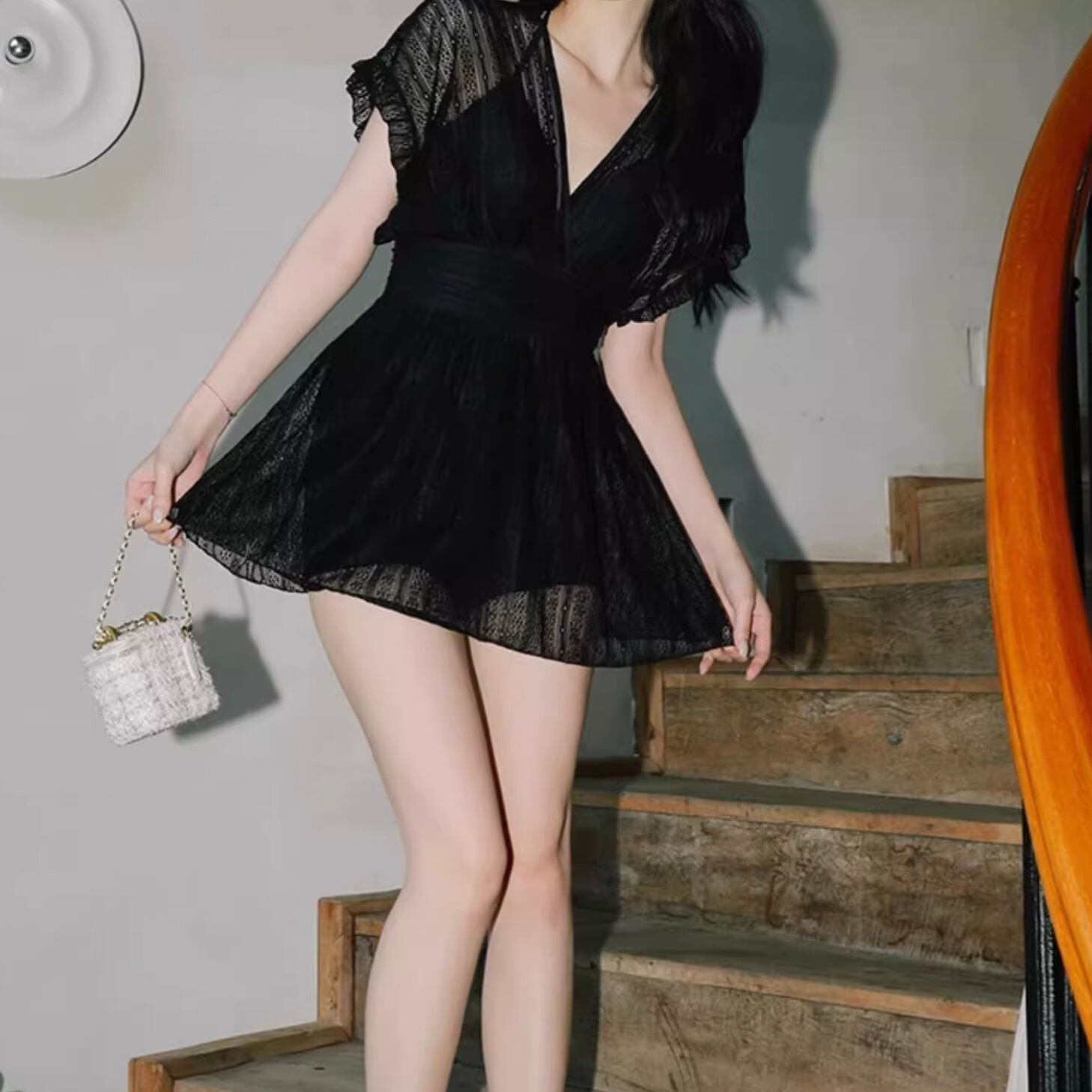 水着 スイムウェア ワンピース水着 体系カバー水着 ワンピース パッド付き 二の腕カバー 半袖 レース 切り替えデザイン 透け感 伸縮性 胸元 谷間 谷間魅せ 盛れる かわいい 大人可愛い きれいめ セクシー sexy シンプル ナチュラル 華やか 大人 大人っぽい おしゃれ お洒落 主役級 存在感 女っぽ ラブリー キュート ガーリー モード系 スタイリッシュ モダン エスニック エキゾチック アジアン 無地 柄 海 ビーチ プール リゾート 体系カバー 美脚 脚長 着痩せ スタイルアップ | SPARKJOY レディースファッション