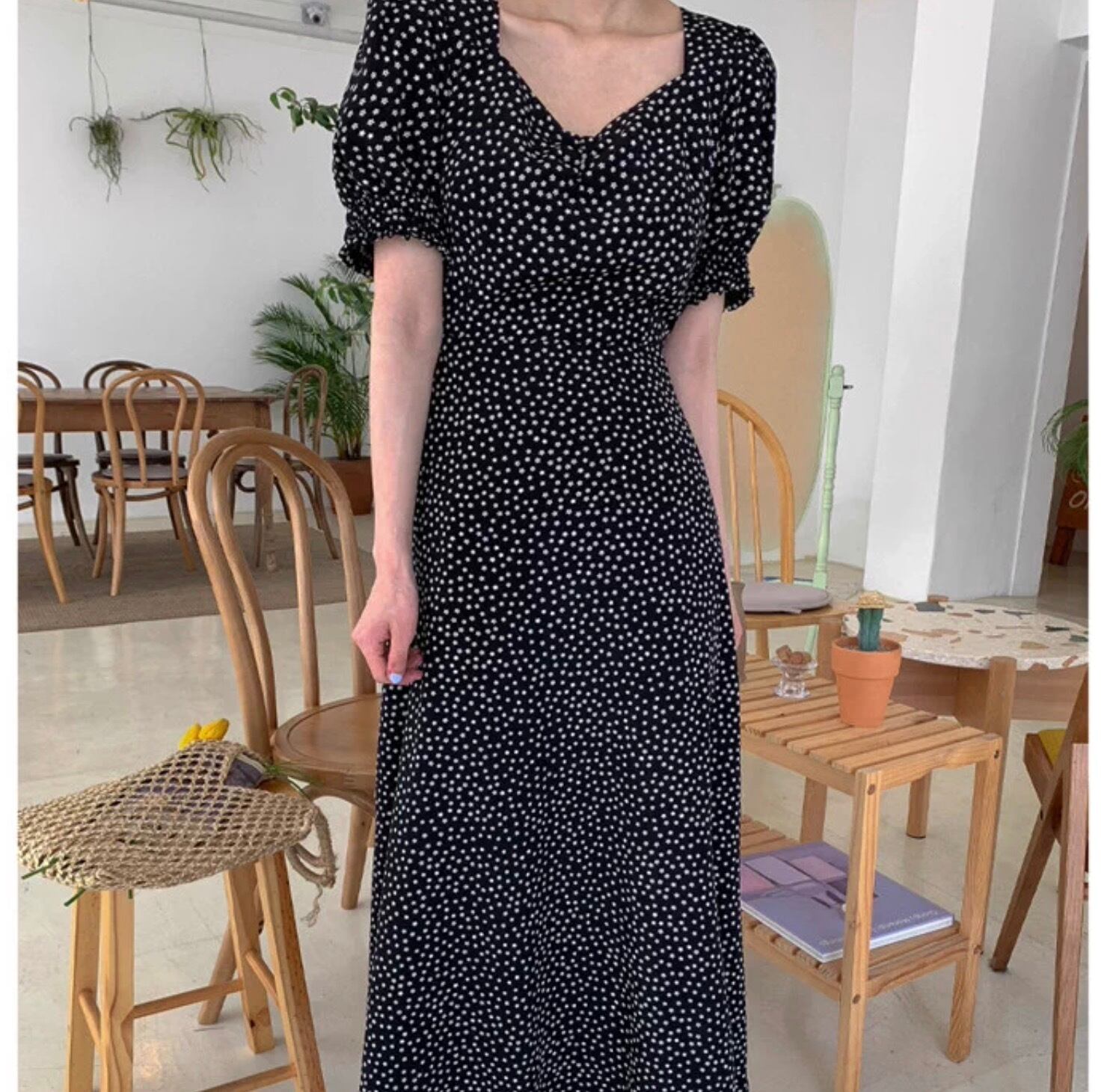 レディース ワンピース デート フレアワンピース ワンピドレス ロング ロング丈 袖あり 半袖 ボリューム袖 パフスリーブ Vネック 襟なし スリム Iライン 切り替えデザイン 伸縮性 かわいい 大人可愛い きれいめ シンプル カジュアル 上品 おしゃれ お洒落 レトロ 大人女子 こなれ感 ラフ ラブリー キュート ガーリー 個性的 クール モード系 エレガント モダン 主役級 存在感 抜け感 無地 レディース デート お出かけ 女子会 休日 着回し 普段使い ファッション コーデ スタイル モテ 定番 | SPARKJOY レディースファッション