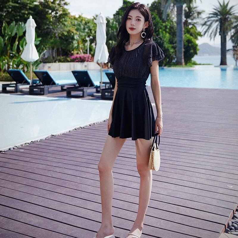 ワンピース水着 フレア 水着 スイムウェア レディース ワンピース 体型カバー スカパン 二の腕カバー 半袖 シフォン フリル シースルー シアー かわいい 大人可愛い きれいめ ゴージャス 華やか 大人っぽい おしゃれ お洒落 レトロ 主役級 存在感 ラブリー キュート ガーリー 個性的 クール セクシー ヘルシー リゾート 旅行 プール 夏 海 美脚 脚長 着痩せ スタイルアップ 韓国 高見え 格上げ モテ 背中見せ インスタ映え 日除け スタイルカバー こなれ感 M L XL 2XL ブラック 黒 | SPARKJOY レディースファッション